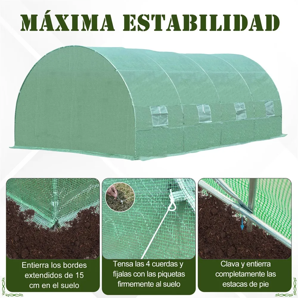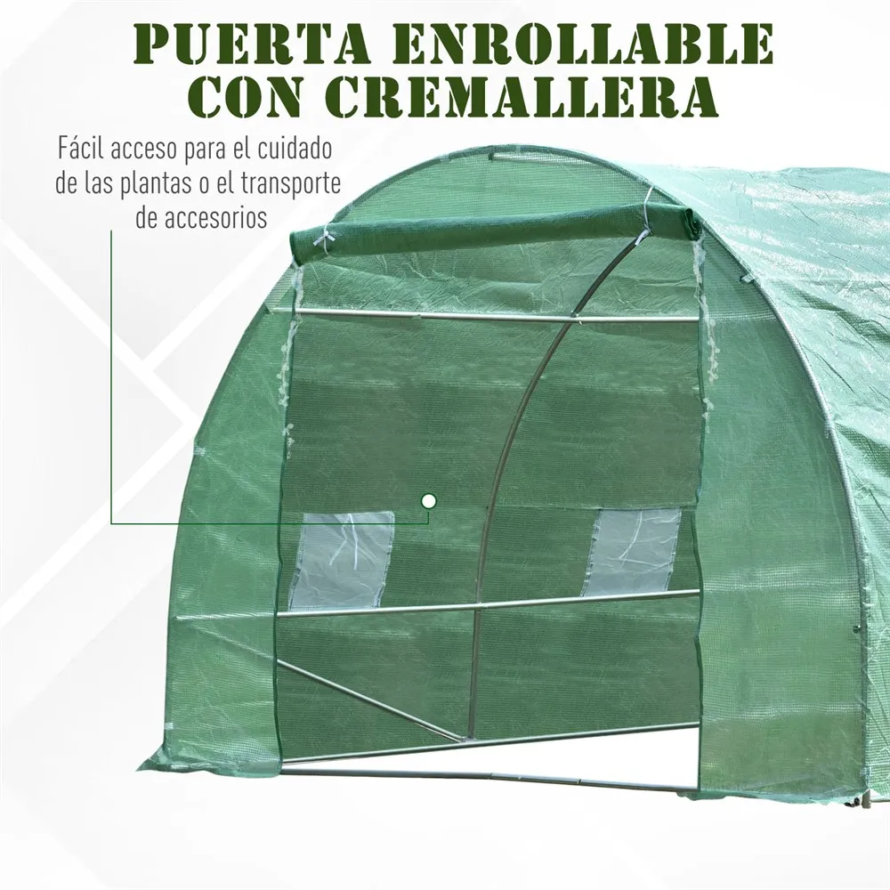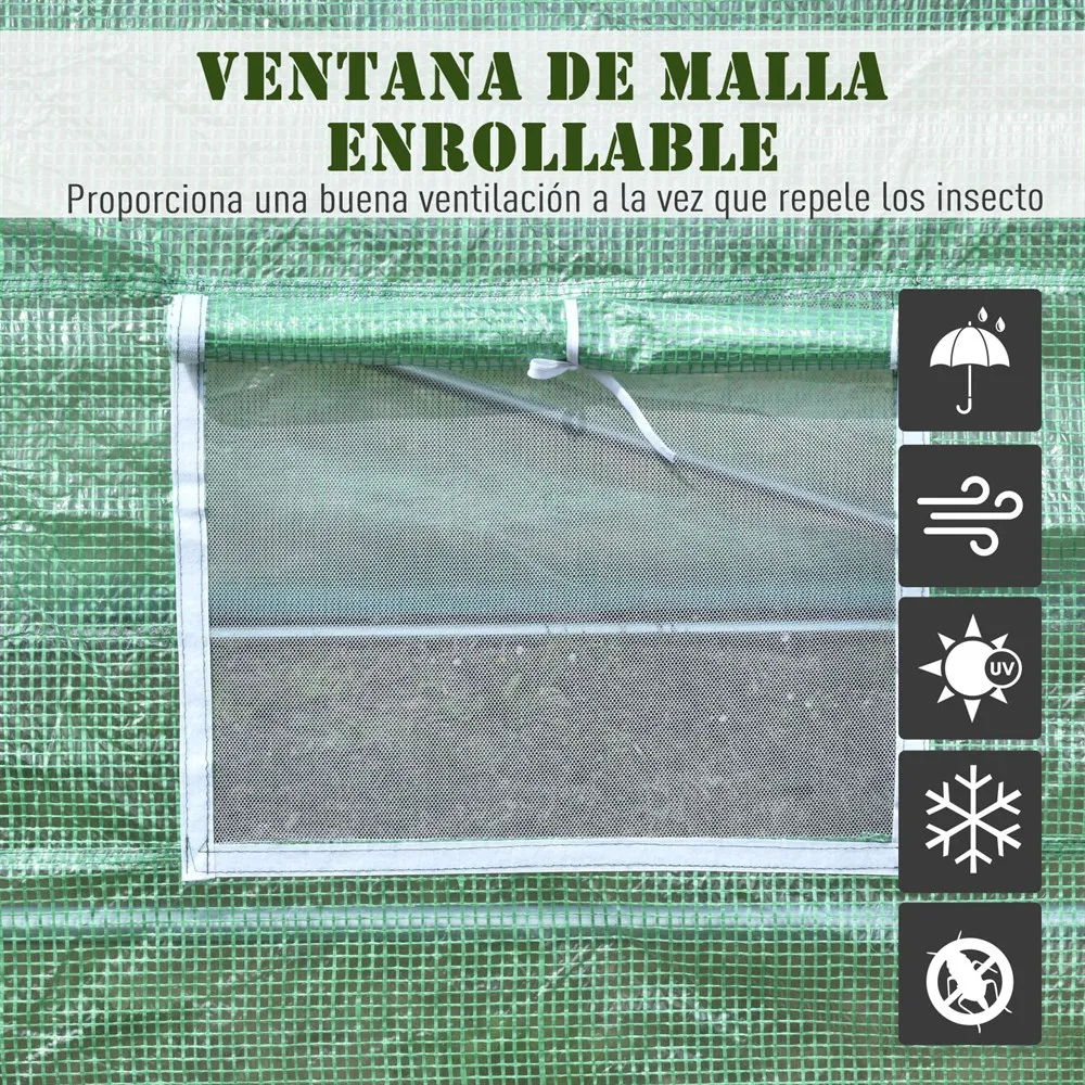 Si buscas un invernadero para tener tus cultivos todo el año, este invernadero de túnel de Outsunny te permitirá tener tu propio jardín interior. Hecho en acero resistente y cubierta con tela de PE, puedes cultivar y proteger tus plantas, frutas y verduras. Proporciona la temperatura, la humedad y la luz solar deseada a tus plantas y cultivos. Las ventanas con tela mosquitera enrollables y la puerta con cremallera permiten un acceso fácil y una protección óptima contra aves, plagas y clima.