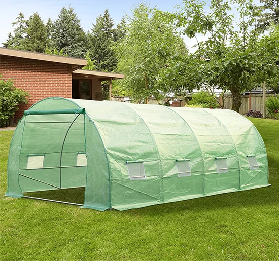 - La cubierta es 15 cm más larga que las patas de la estructura metálica. El borde inferior se puede enterrar en el suelo, para aumentar así la estabilidad y fijación del invernadero