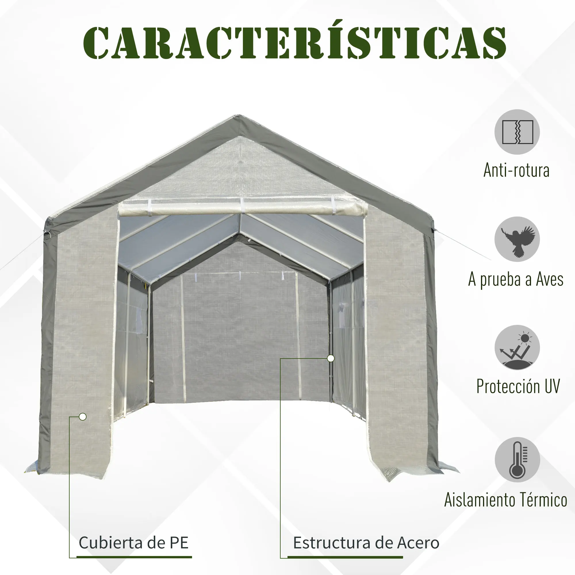Si quieres avanzar los cultivos de temporada, darte un capricho con frutos tropicales o simplemente quieres proteger tus plantas y cosecha del frío invierno, este invernadero de 18m² de Outsunny cumplirá tus expectativas. Cuenta con 2 puertas con cremallera para facilitar el acceso y transporte de plantero o herramientas y 6 ventanas, 3 en cada lateral, para proporcionar una buena ventilación y que puedas observar tus plantas desde fuera.
