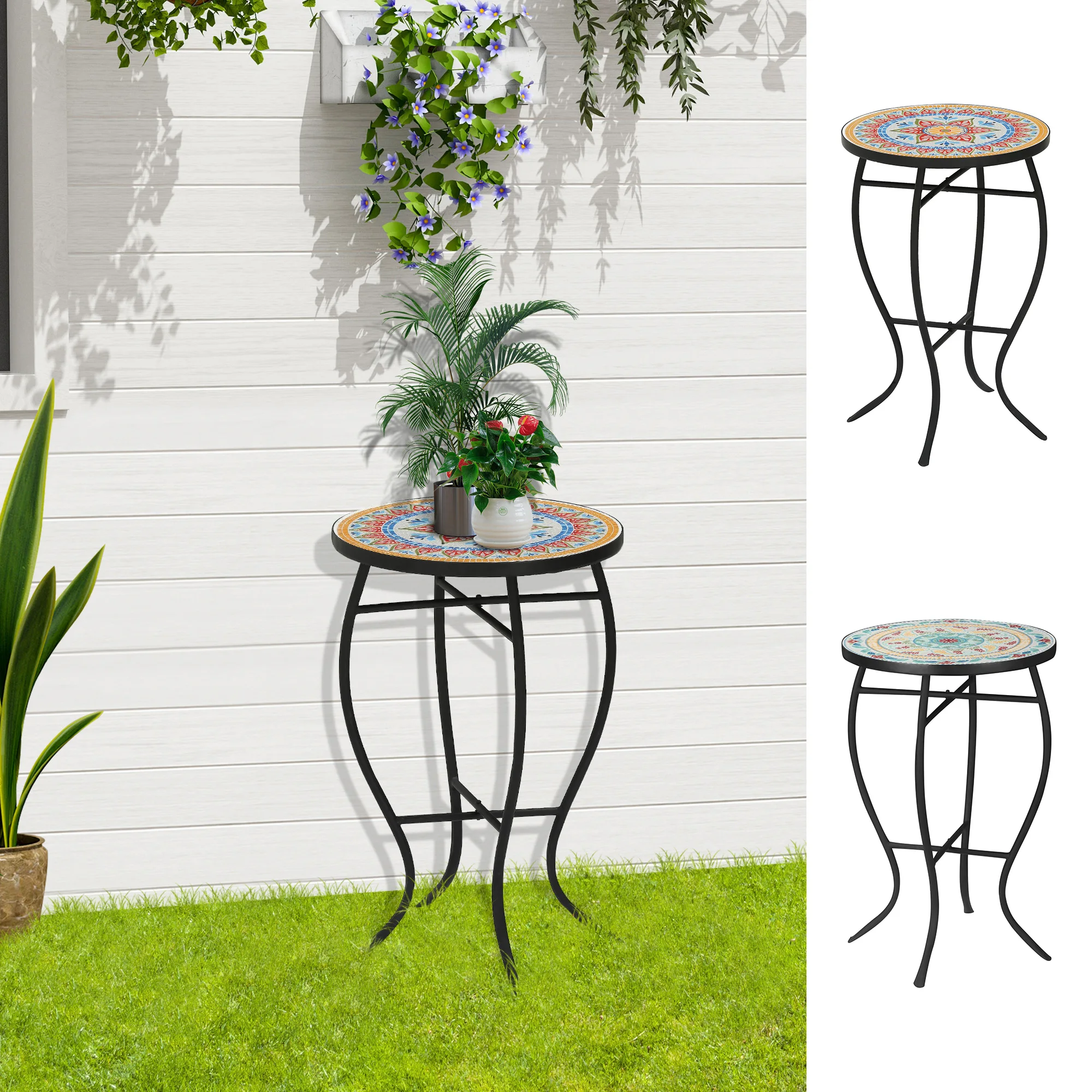 Comprar Outsunny Mesa de Jardín Redonda Mesa Auxiliar de Mosaico con Patas de Metal para Patio Terraza Exterior Balcón 35,5x35,5x53,5cm