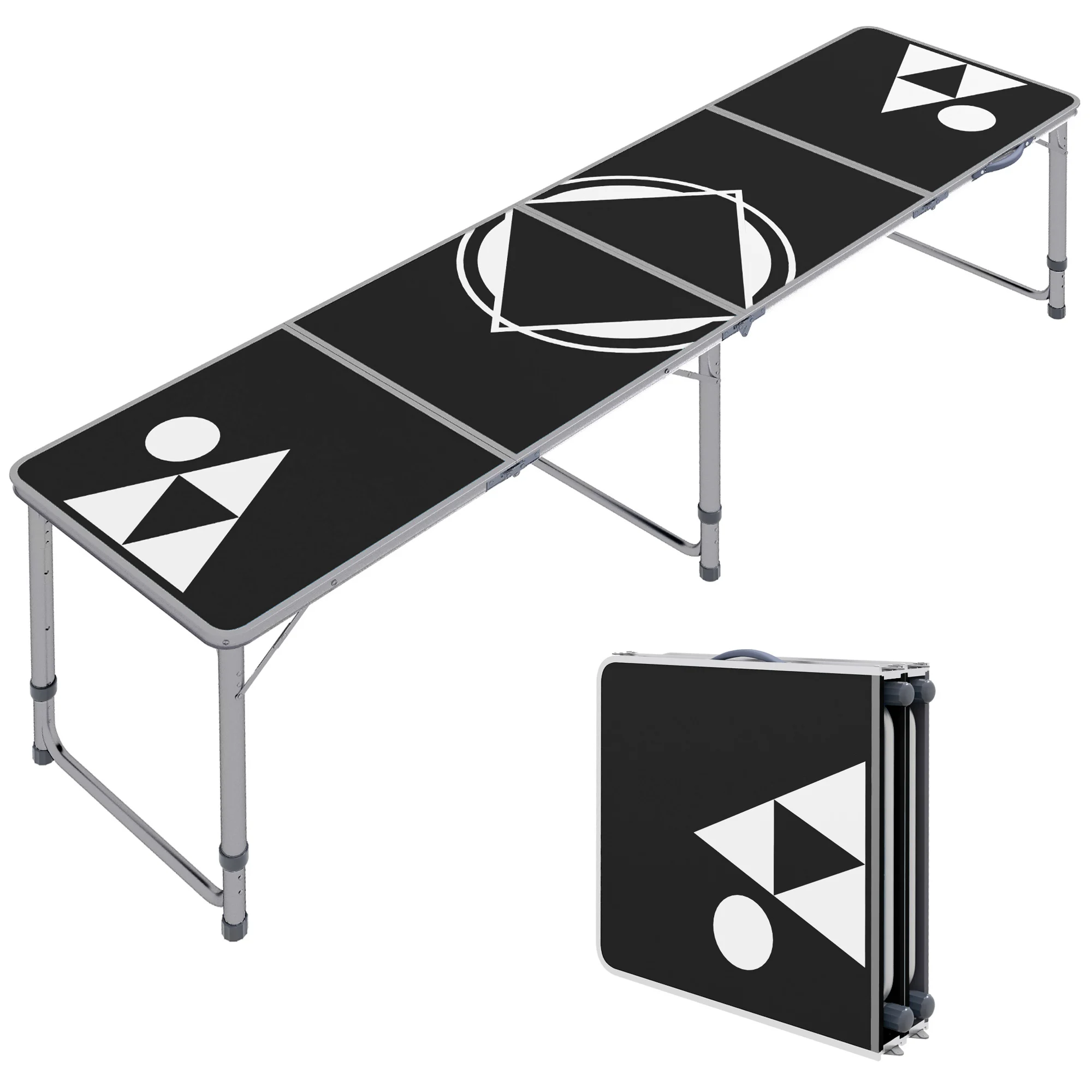 Outsunny Mesa Portátil con Patas de Aluminio Mesa de Beer Pong Plegable con Altura Ajustable en 3 Niveles para Jardín Barbacoa 240x60x54-70 cm Negro y Plata
