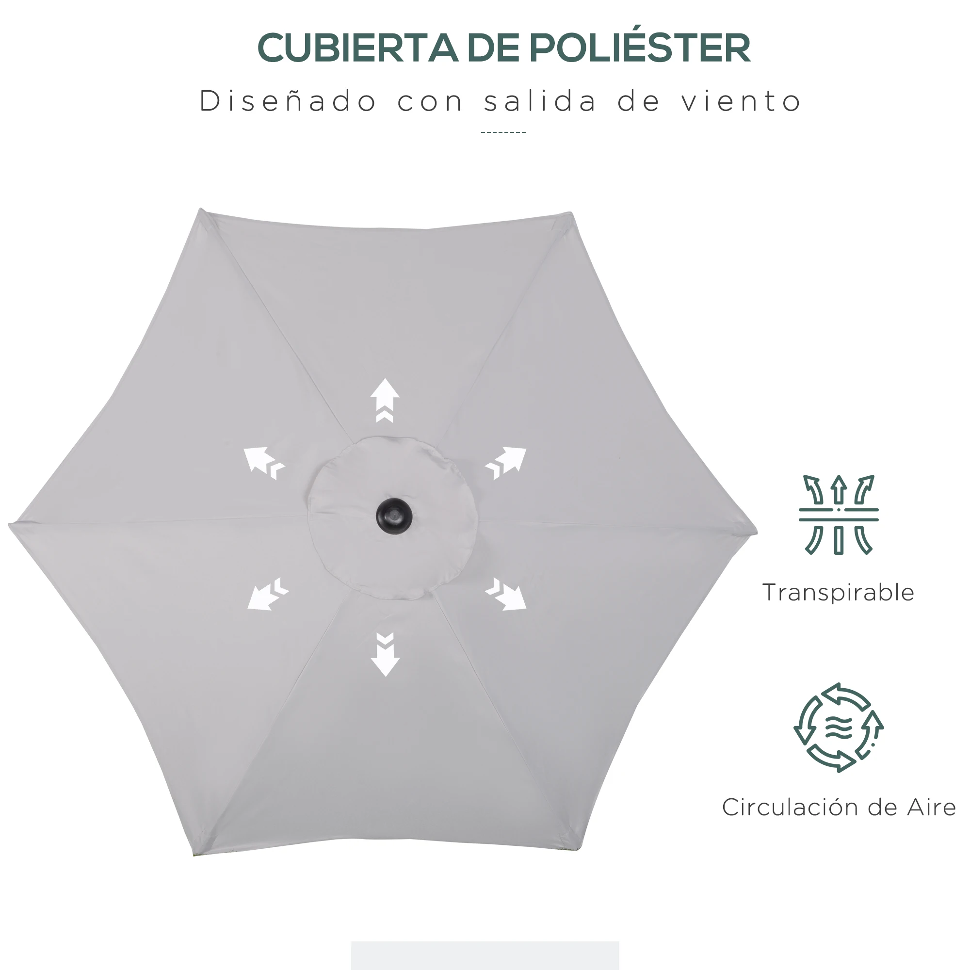 ¿Estás buscando una sombrilla práctica y elegante para tu jardín o terraza? Este parasol de jardín de Outsunny es ideal. Con estructura metálica y toldo de tela de poliéster con ventilación superior, es resistente e ideal para un uso prolongado a la intemperie. Se abre fácilmente de forma manual por empuje como un paraguas. Con un diámetro de 196 cm, es una sombrilla de medidas estándar ideal para cubrir, por ejemplo, tu zona de mesa y sillas en el jardín, patio o terraza de tu casa.