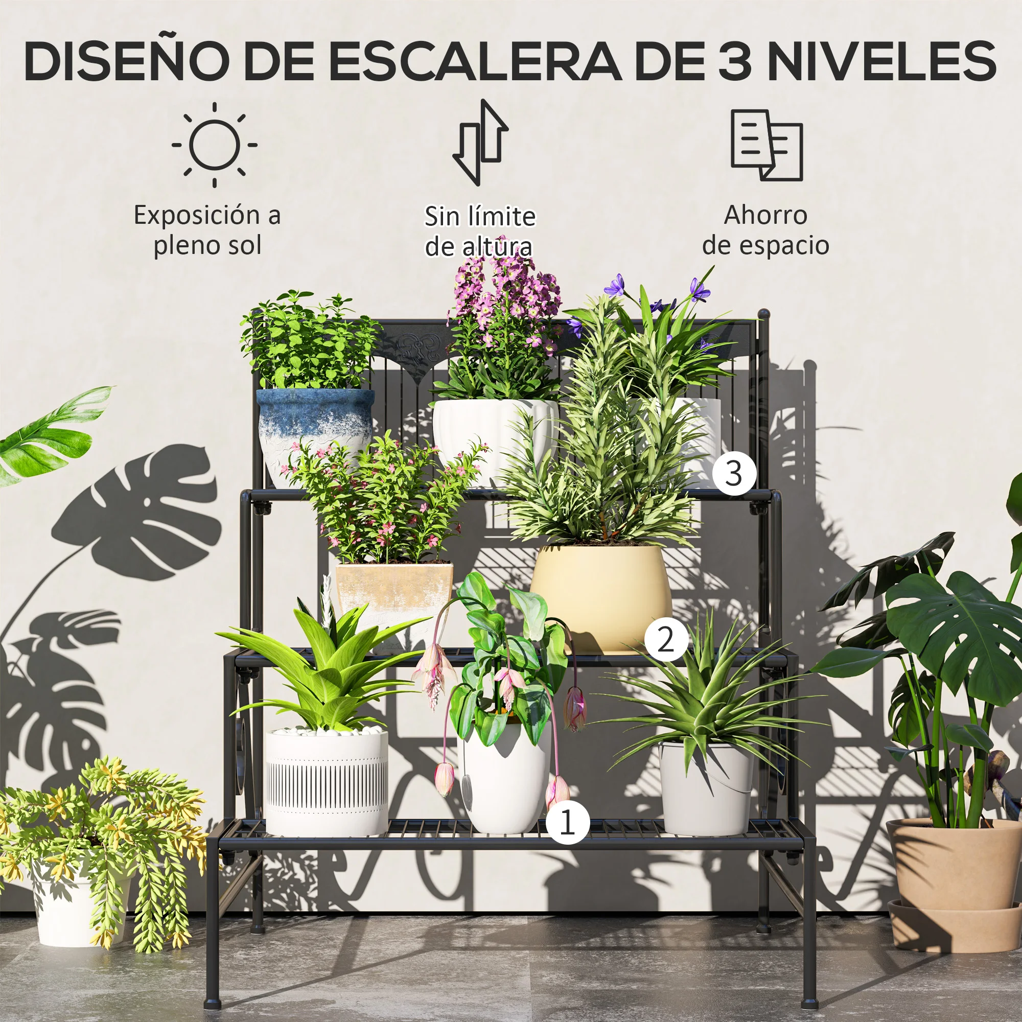 ¡Dale un toque especial a tu rincón con este soporte para plantas de 3 niveles de Outsunny! El diseño en escalera permite que tus plantas disfruten de abundante luz solar y aire fresco, mientras que su estructura metálica sólida con acabado en polvo previene deformaciones. Perfecto para exhibir tus plantas favoritas o decoraciones, tanto dentro como fuera de casa. ¡Elegante y práctico al mismo tiempo!