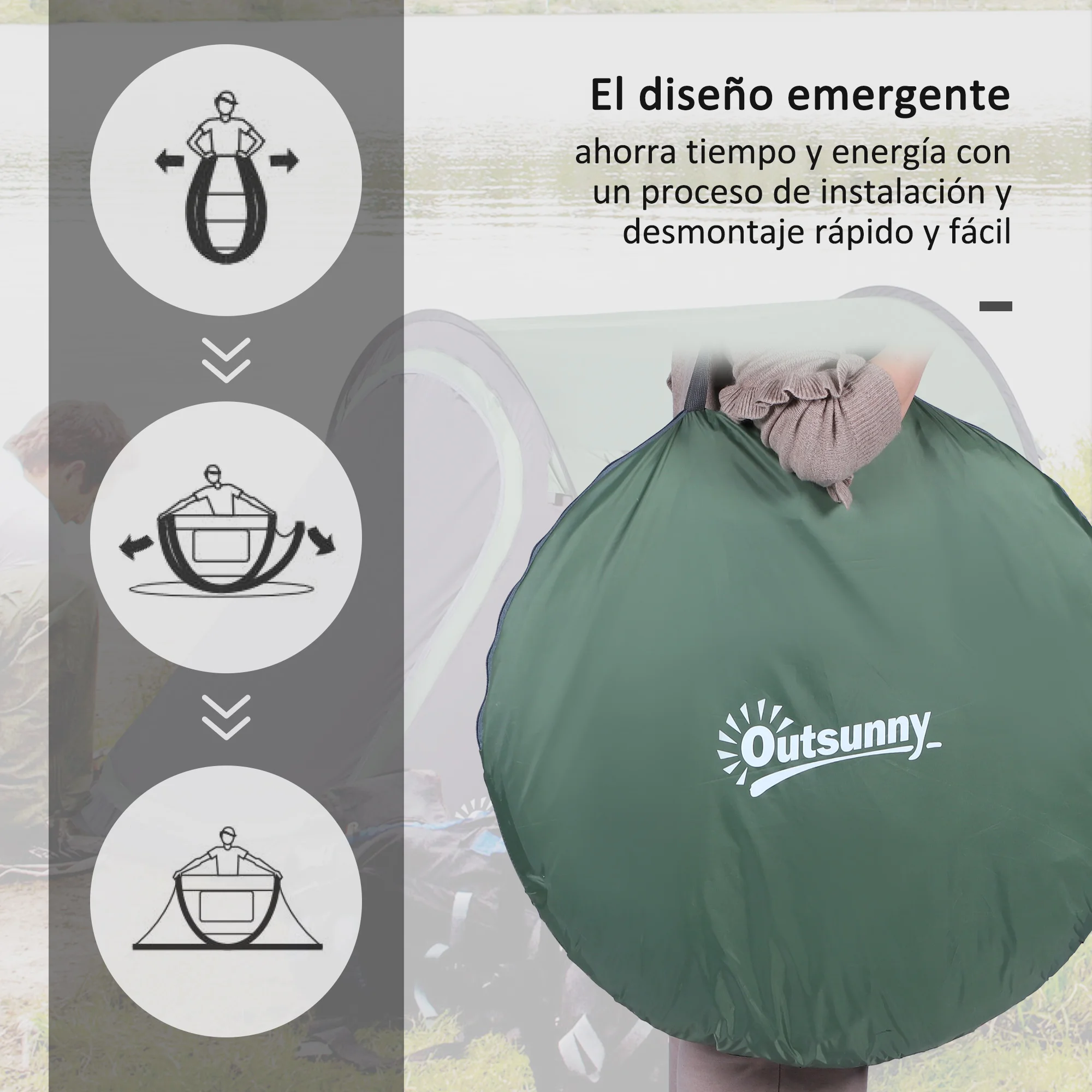 Outsunny Tienda de Campaña Pop-up para 1-2 Personas Tienda de Camping Impermeable 3000 mm Anti-UV con Bolsillos y Bolsa de Transporte para Pescar Senderismo 250x150x100cm Verde
