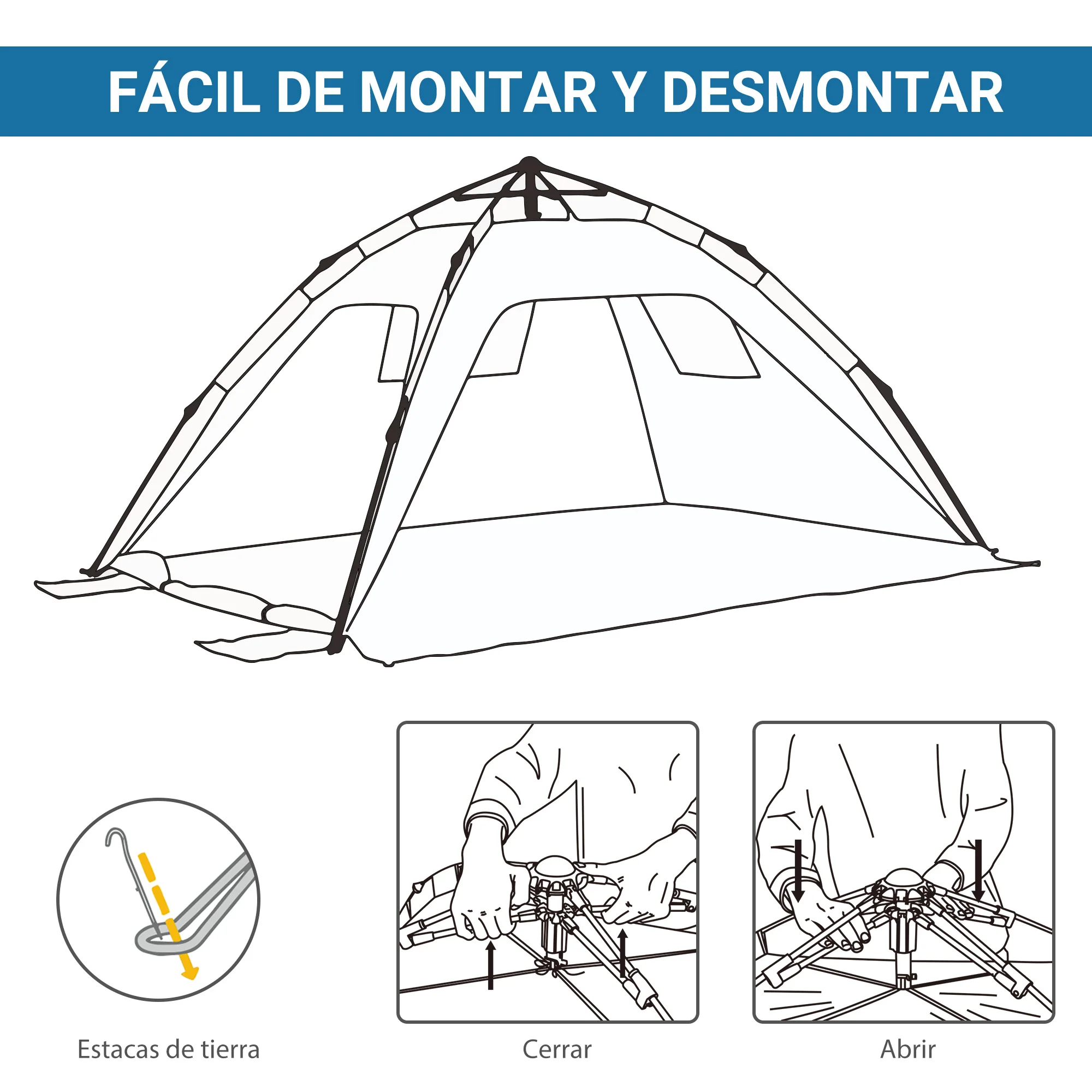 Disfruta de un día en la playa con esta tienda de campaña para playa de Outsunny. Es espaciosa por dentro, perfecta para que dos personas se relajen cómodamente. Su mecanismo de apertura automática te permite montarla y desmontarla en segundos. Incluye un suelo resistente para sentarse.