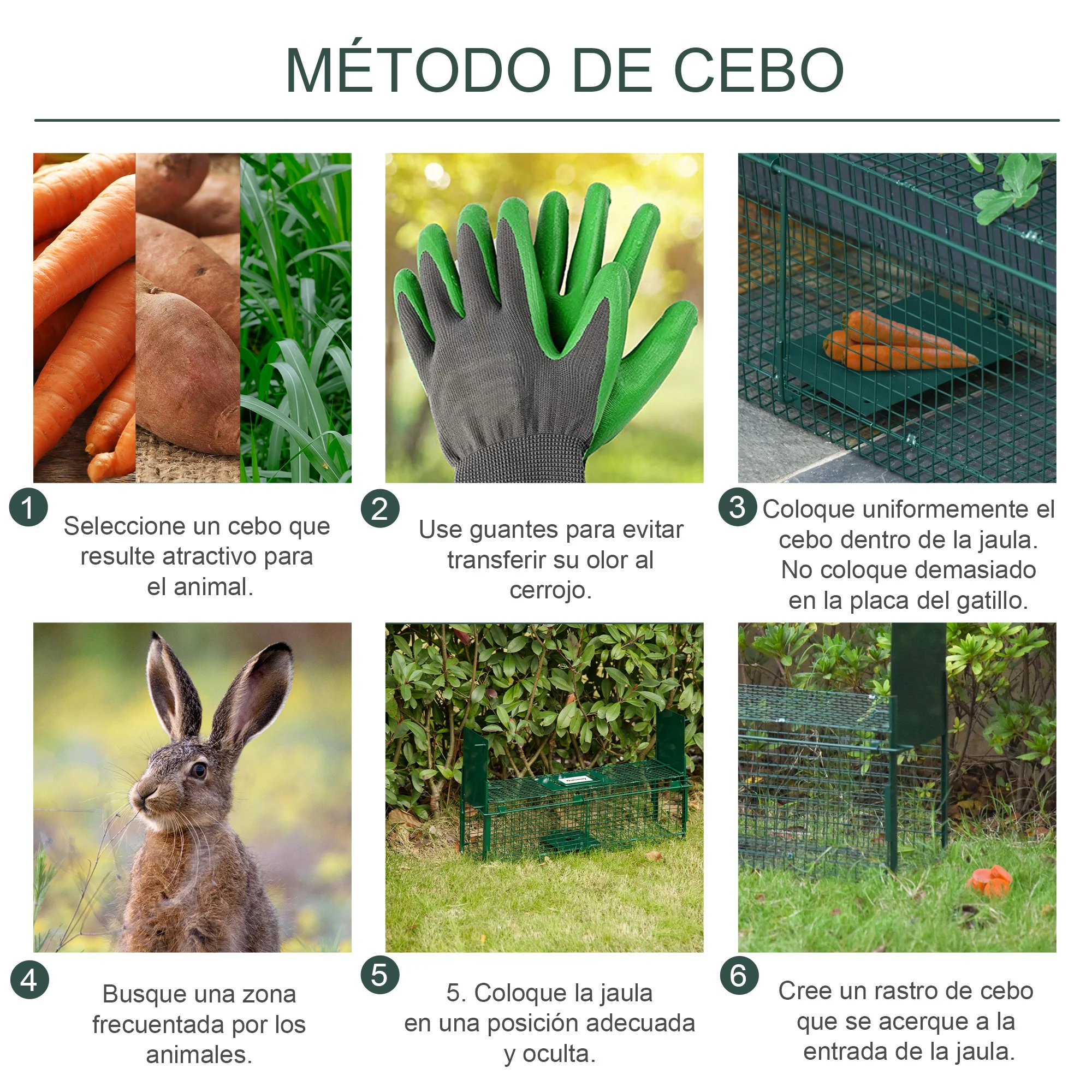¿Hay un animal que destroza tu jardín o se come tus cultivos del huerto y quieres capturarlo sin hacerle daño? Entonces esta jaula para animales vivos de PawHut te va a alegrar. En ella vas a poder capturar los animales vivos sin lastimarlos. Su mecanismo de alta sensibilidad ofrece una gran eficiencia de captura con gran precisión. Gracias a su color verde, en exteriores y en plena naturaleza, pasará desapercibida entre los animales. ¡La trampa que no daña!