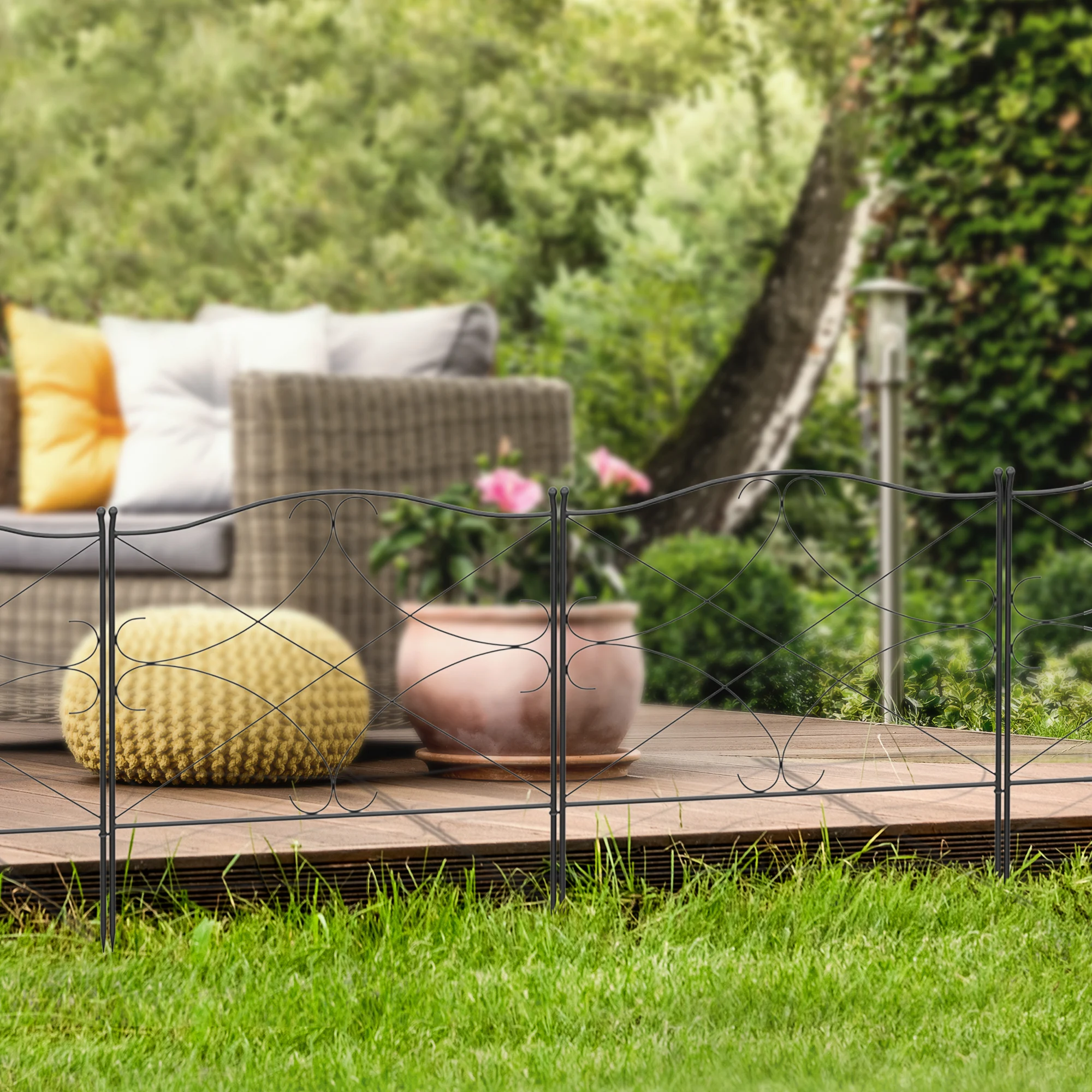 Comprar Outsunny Vallas Decorativas para Jardín de 5 Paneles 305x62 cm Cerca de Privacidad de Metal con Estacas y Bordes de Césped Barrera para Animales Negro