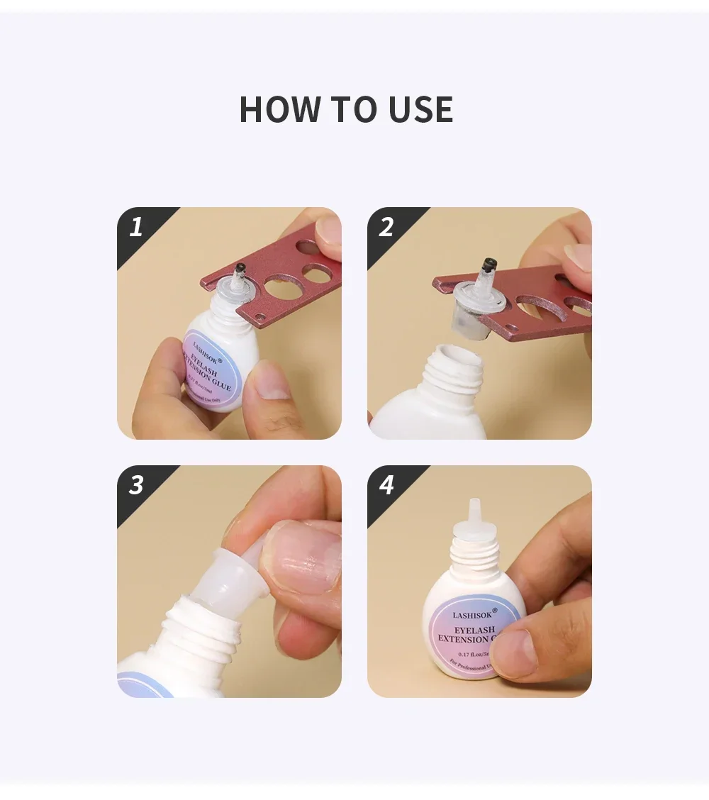 GLAMLASH – ouvre-bouchons en acier inoxydable, pour colle à cils universelle, bouteille de remplacement, tête de bouche, outil Anti-blocage pour cils