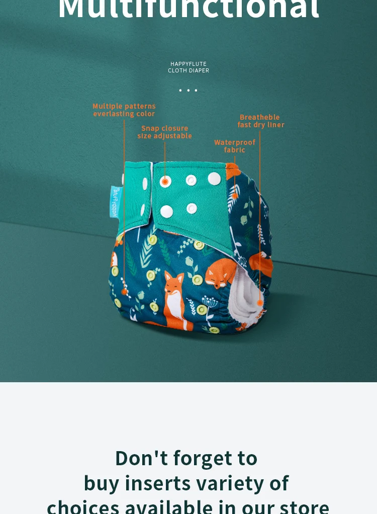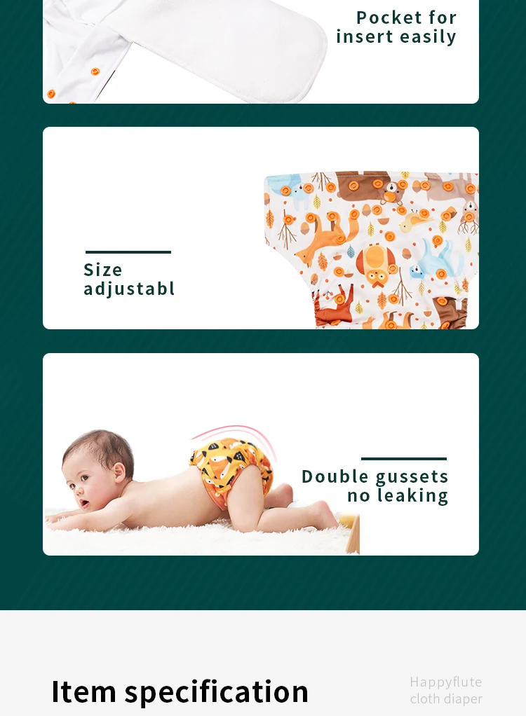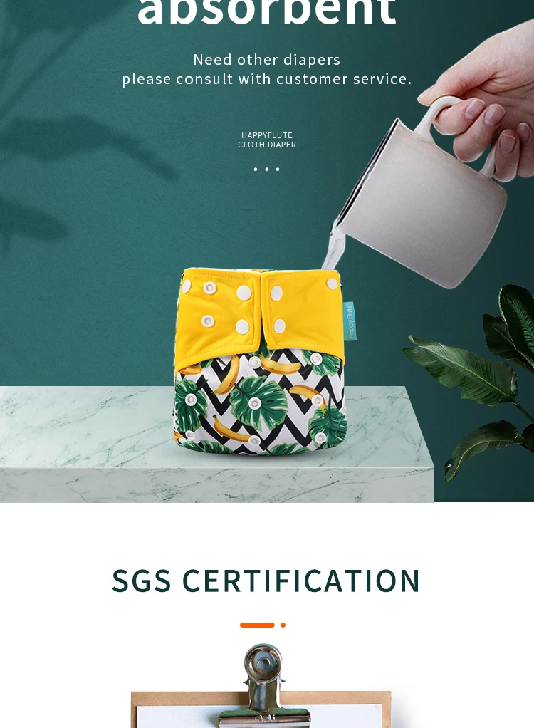 Comprar Pañal de tela HappyFlute, pañal interior de tela de gamuza para bebé, pañal impermeable y reutilizable, refuerzo doble