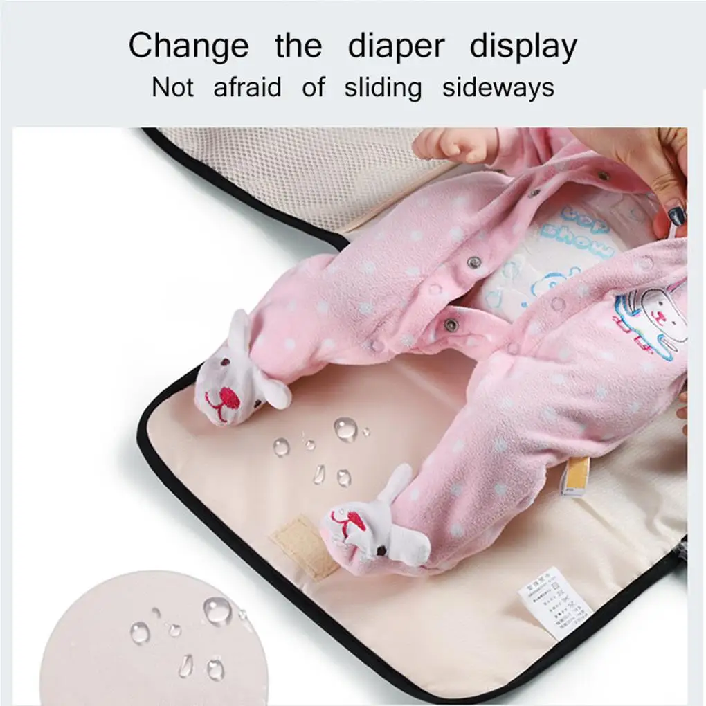 Material premium: Este cambiador para bebés está hecho de poliéster Premium, tela y material de esponja, lo que garantiza la durabilidad.