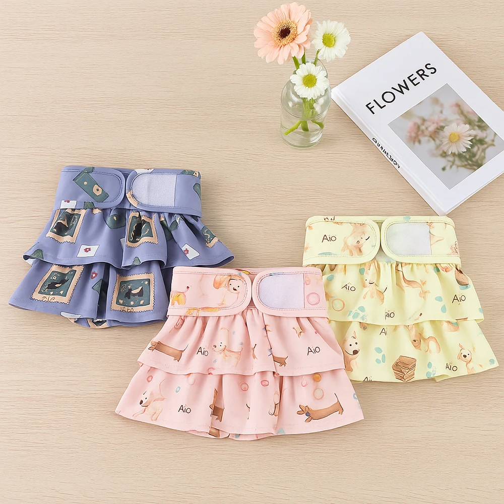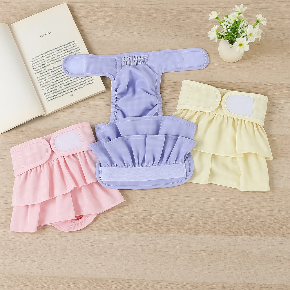 Pañales lavables para perros y mujeres, falda de Material PU, ropa interior corta, bandas para el vientre, bragas reutilizables para mascotas, pantalones sanitarios, 3 uds.