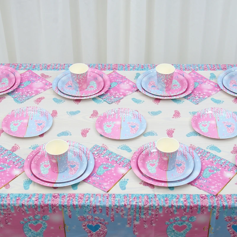 Pancarta de cortina de puerta para niño o niña, decoración de fiesta de revelación de género, vajilla desechable, suministros para fiesta de Baby Shower