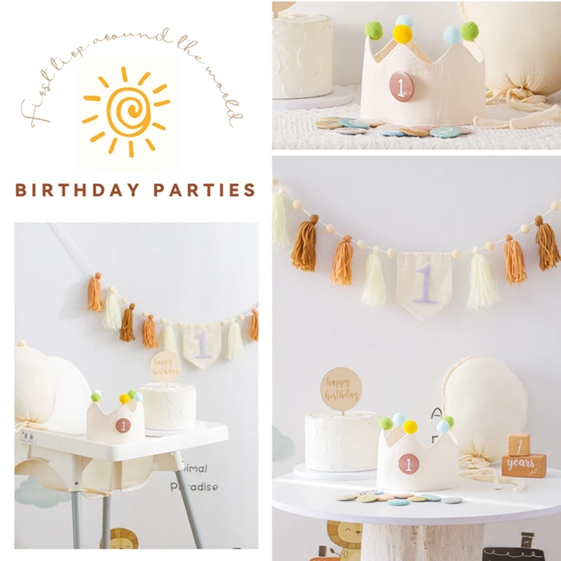 Banner de feliz cumpleaños de 1 a 6 años, sombrero de algodón 100%, varita mágica, colgante de borla hecho a mano, suministro para fiesta de cumpleaños de bebé, adorno colgante
