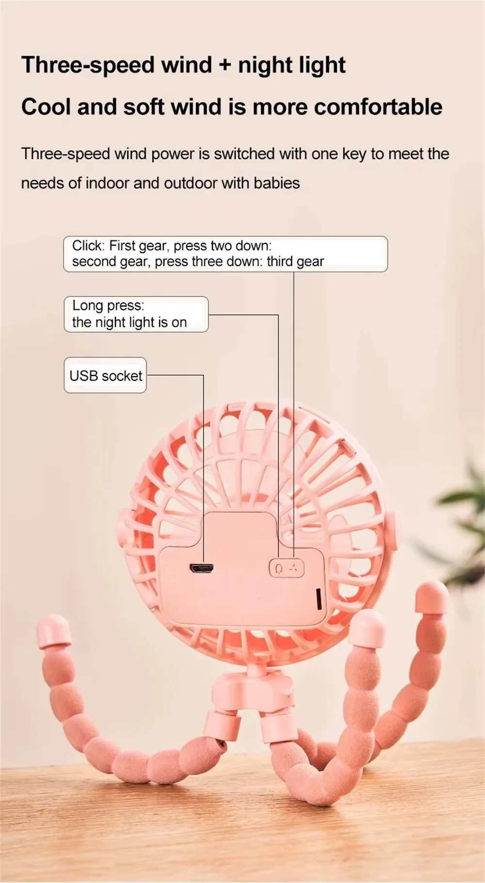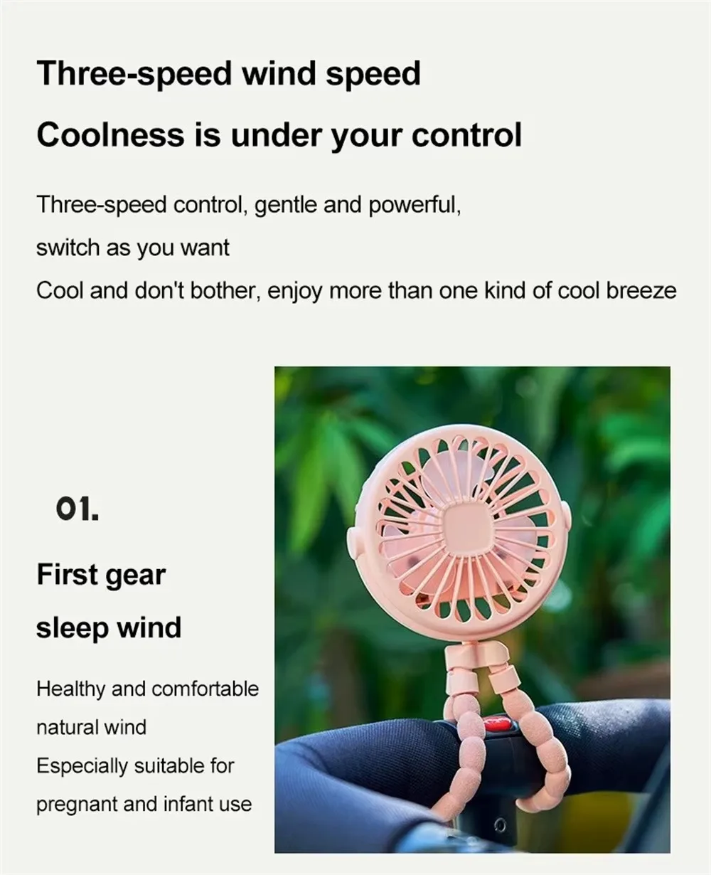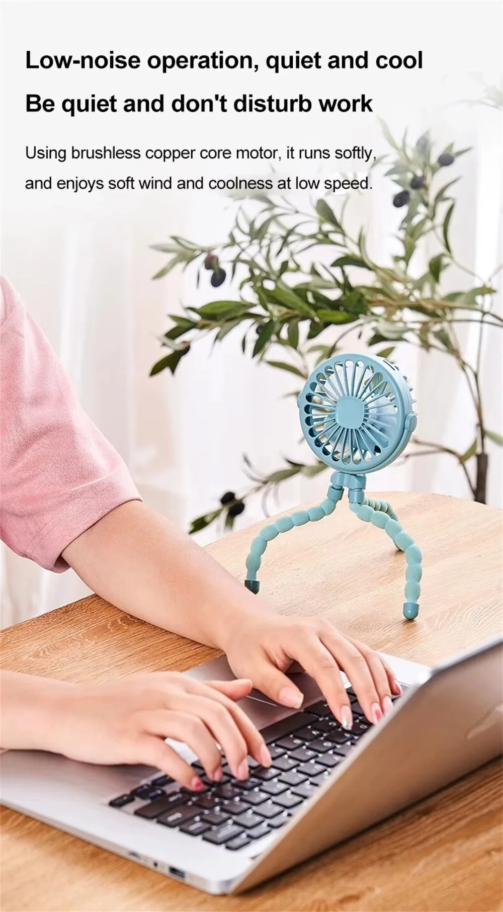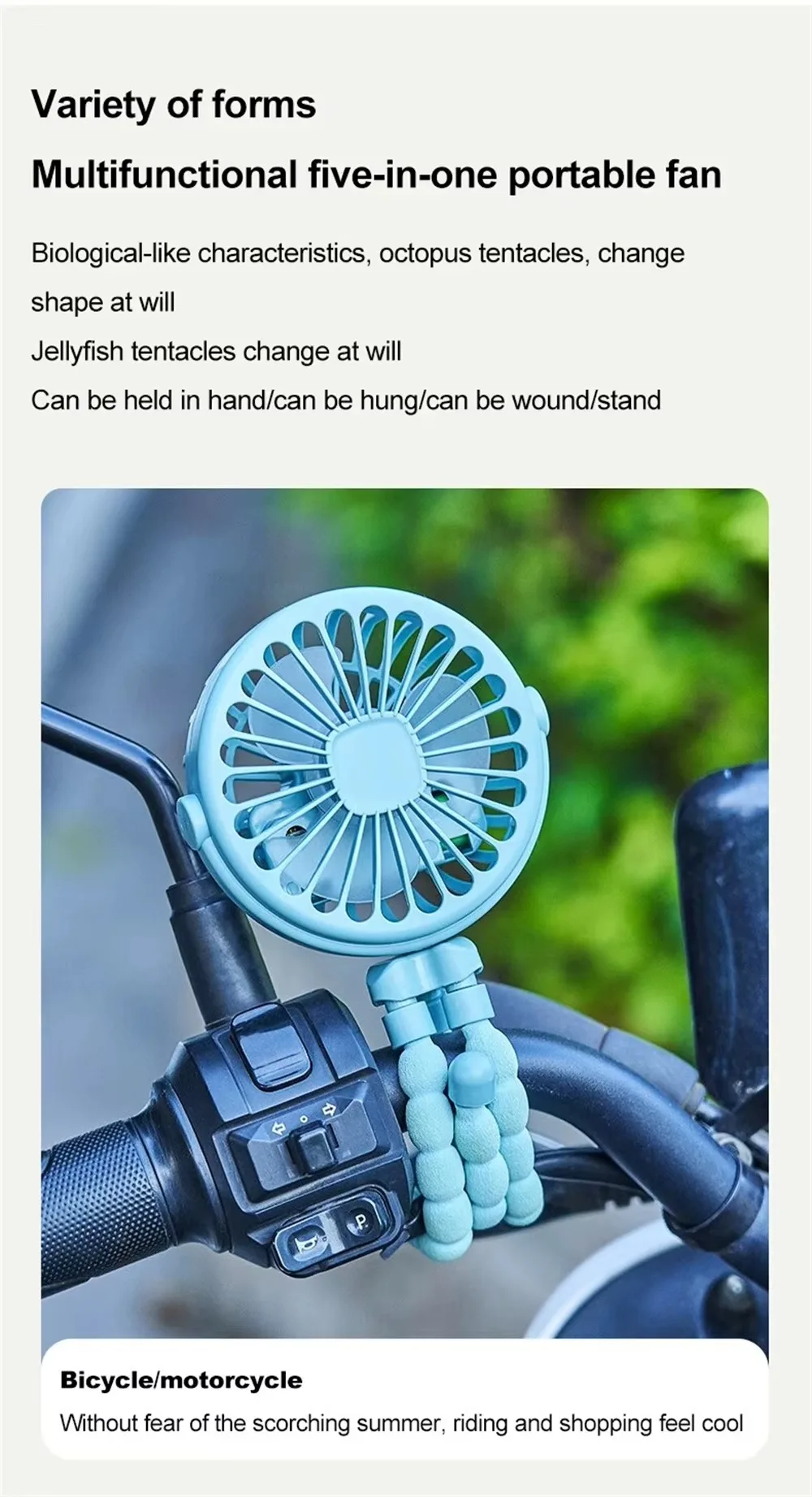 PANGDUBE-ventilador de pulpo recargable por USB, Mini ventilador de mano para cochecito de bebé, cuna, escritorio, Camping, viaje, ventilador portátil, soporte para teléfono