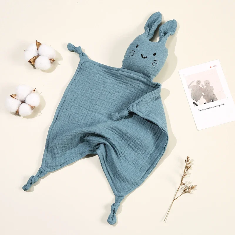 Paño de muselina de algodón para bebé, muñeco de conejo bonito, manta cómoda para niños, toalla para dormir, bufanda para Saliva para niños pequeños