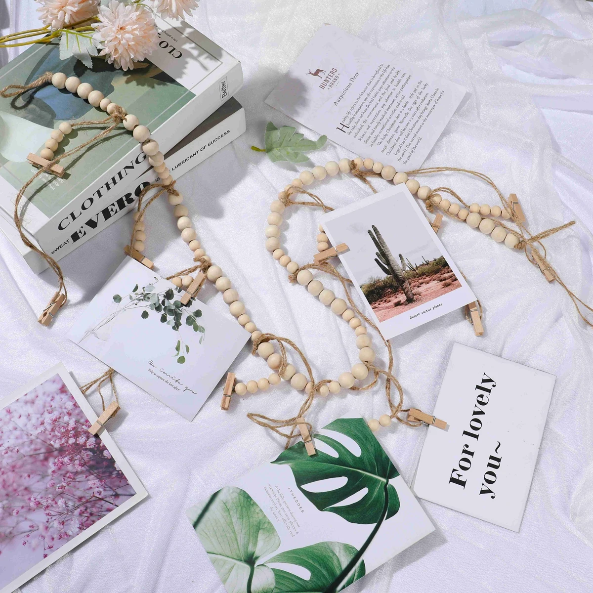 Pantalla de fotos colgante con cordón de cuentas de madera de Color de registro, almacenamiento de fotos, borla, cuerda de cáñamo, Clip de cuerda de cuentas, decoración del hogar