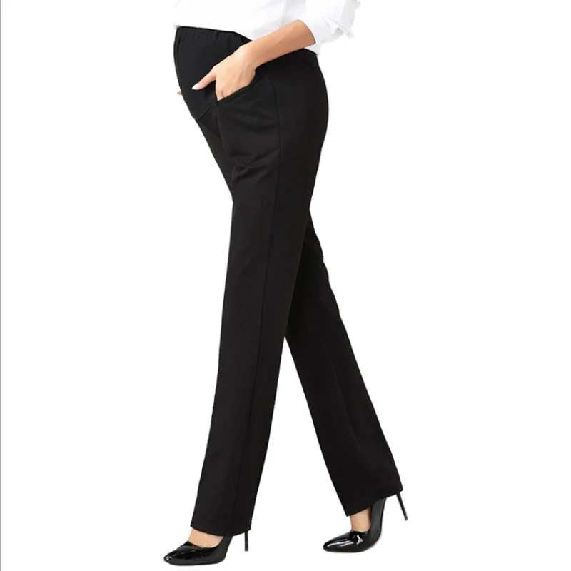 Comprar Pantalón de maternidad elástico de talla grande, pantalones de corte recto de cintura alta para embarazadas, pantalones de trabajo de embarazo para mujeres S a 4XL