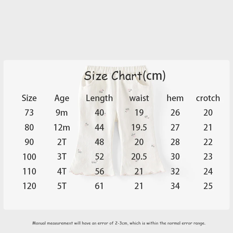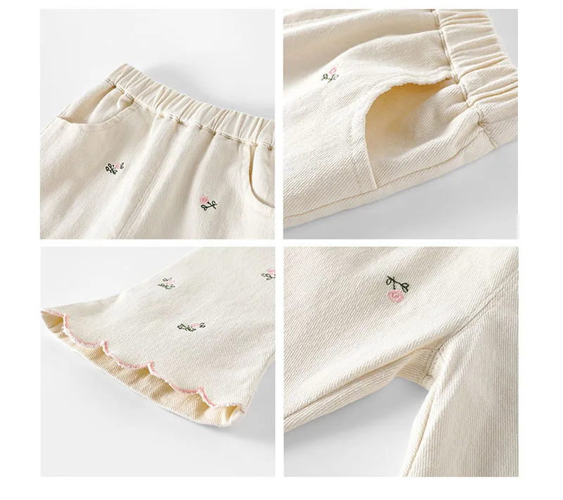 1.**Delicado bordado floral**: El lindo bordado de flores pequeñas agrega un toque dulce y artístico, haciendo que los pantalones sean únicos y atractivos para las niñas.