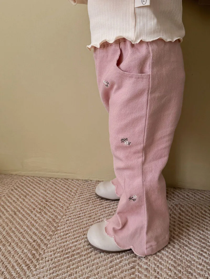 Comprar Pantalones acampanados de estilo japonés para niños, pantalones informales con cintura elástica y bordado de flores para niñas pequeñas, otoño
