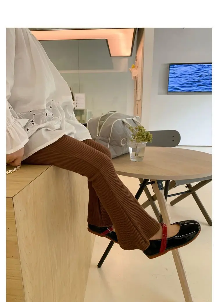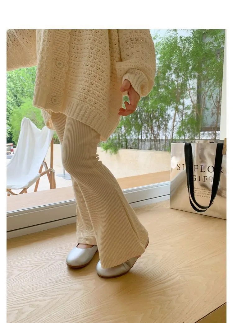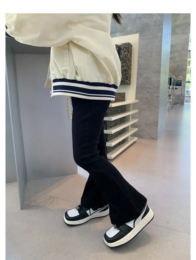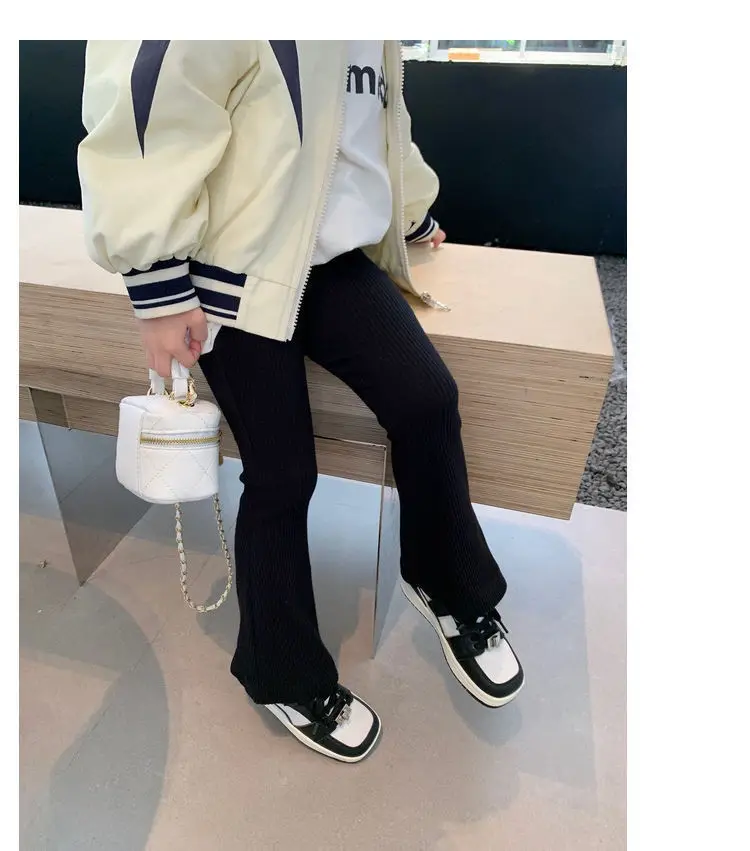 Pantalones acampanados para niños de verano 2025: leggings elásticos acanalados de seda helada para niñas: ¡toda, transpirable, elegante para uso exterior!