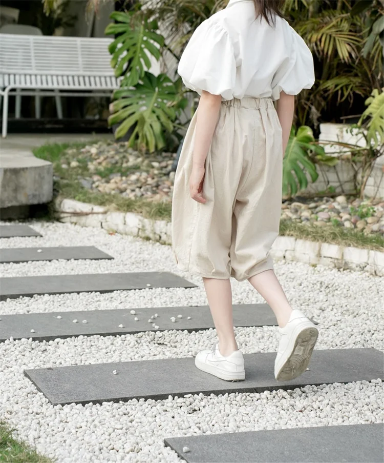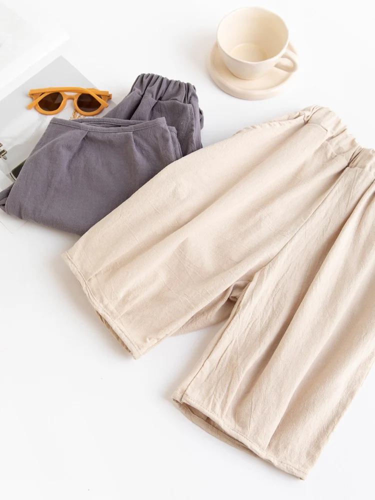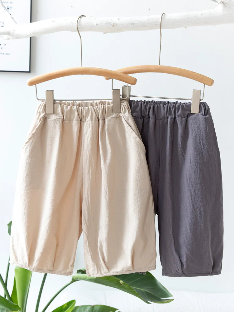 Comprar Pantalones de algodón y lino hasta la pantorrilla para niños, bombachos sueltos, pantalones casuales para niños, niñas y niños de 2 a 7 años, Verano