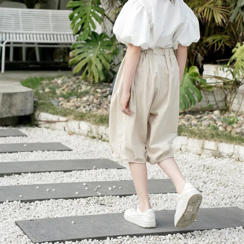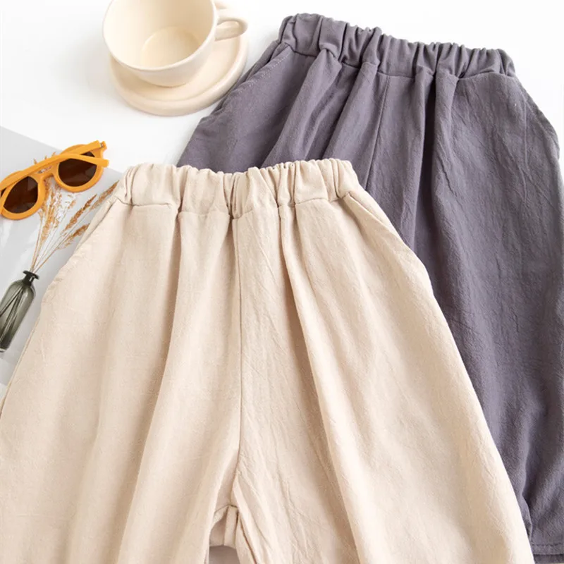 Comprar Pantalones de algodón y lino hasta la pantorrilla para niños, bombachos sueltos, pantalones casuales para niños, niñas y niños de 2 a 7 años, Verano