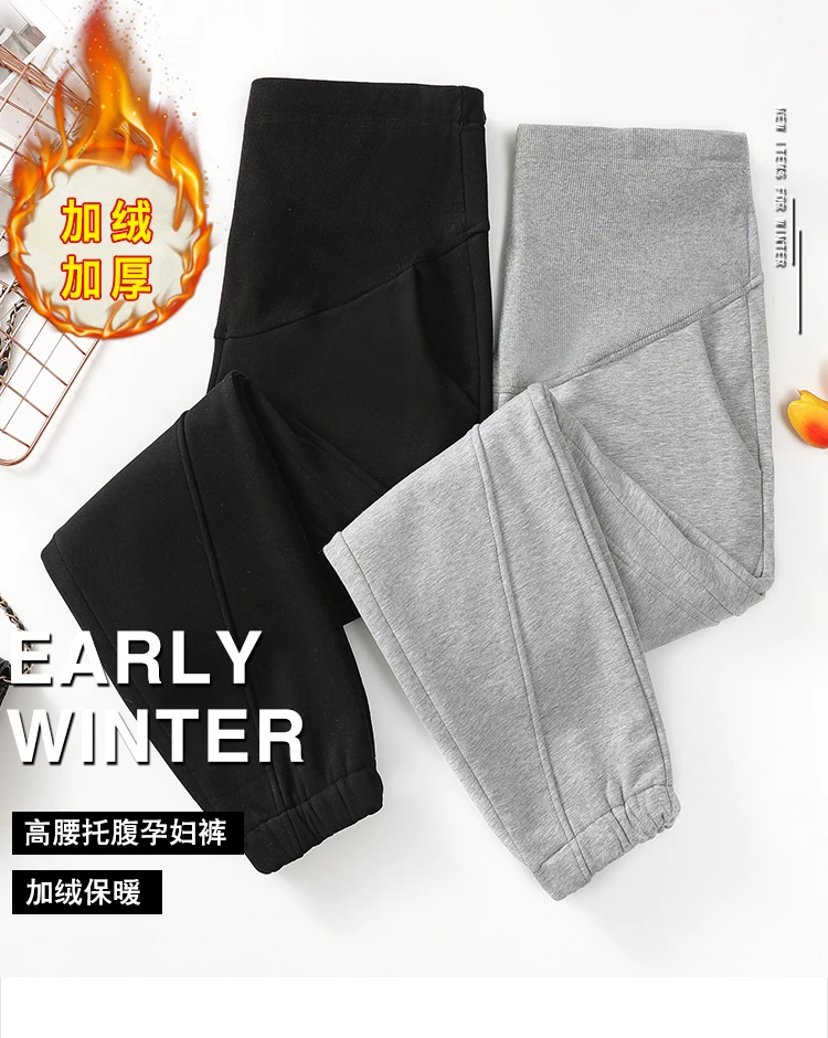 Comprar Pantalones de algodón de terciopelo para mujeres embarazadas, ropa de maternidad térmica, gruesa, informal, para invierno, 1915