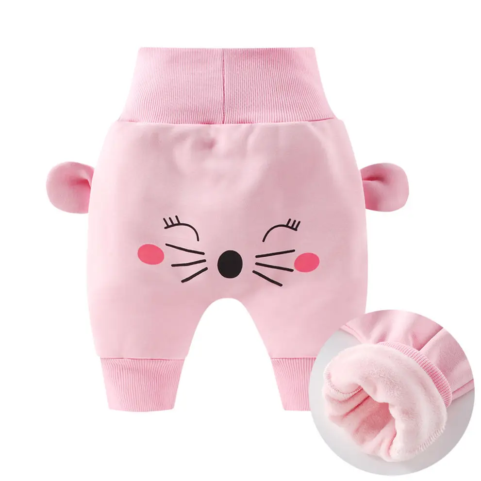 Bebé lindo pantalones niños niña dibujos animados cintura alta protección vientre niños niño primavera Otoño Invierno recién nacido cálido pantalones de terciopeloTamaño