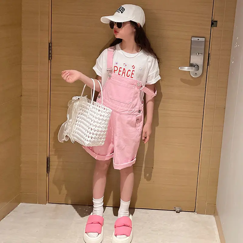 Comprar Pantalones cortos de algodón transpirables para niñas, peto de estilo informal, holgado, cómodo, Verano