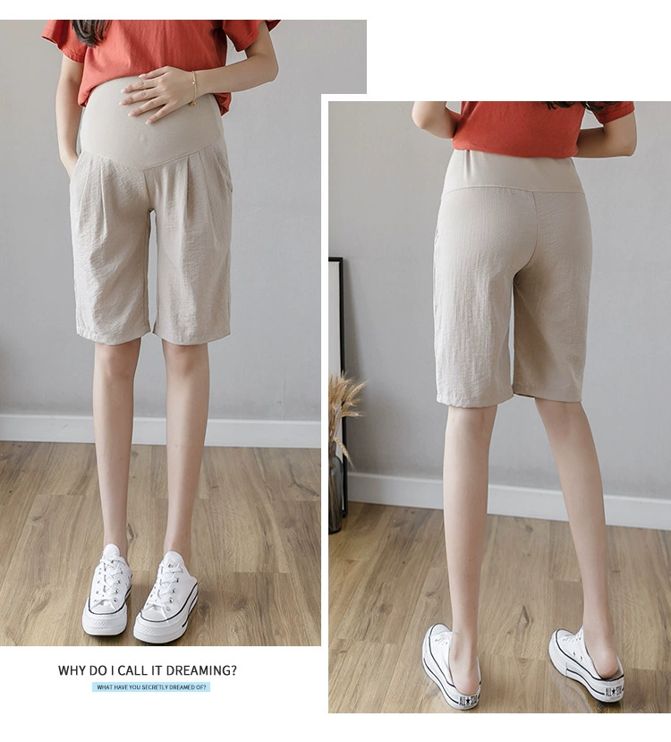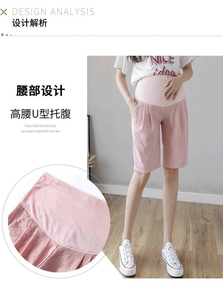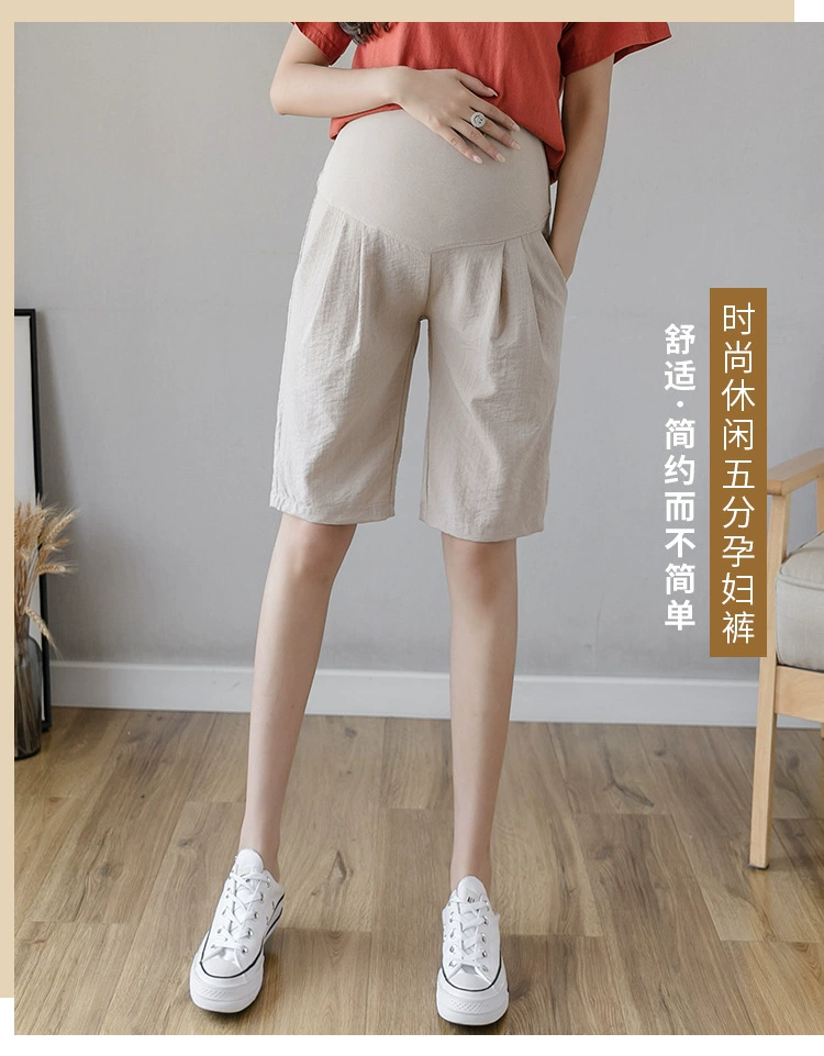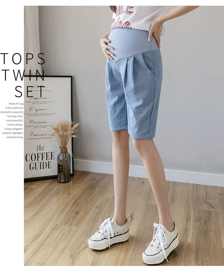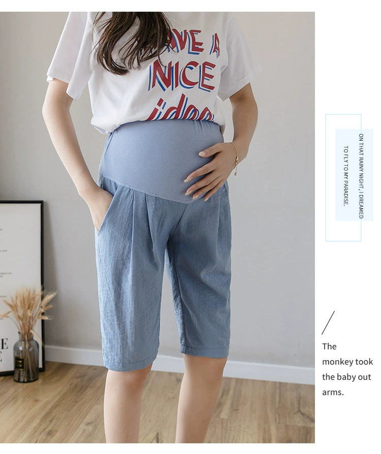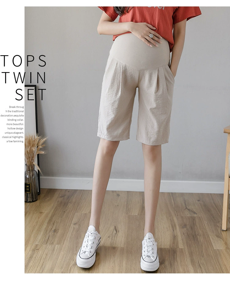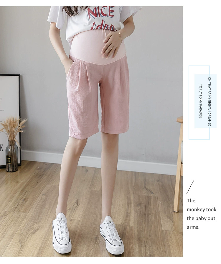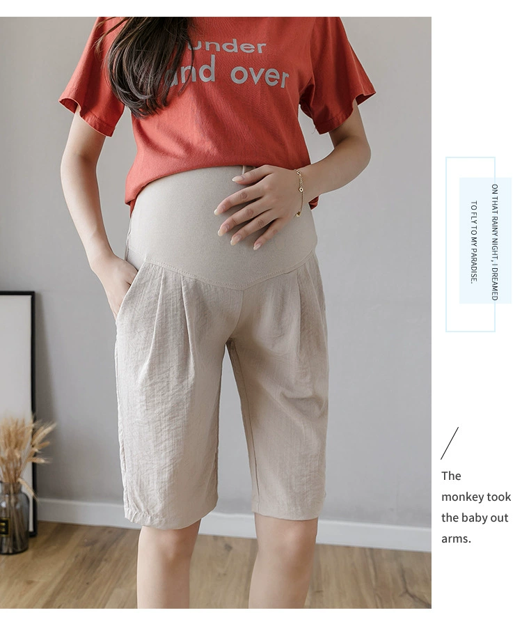 Comprar Pantalones cortos de algodón y lino para mujer embarazada, Shorts de moda de verano, ropa informal para embarazo, 1/2 de longitud