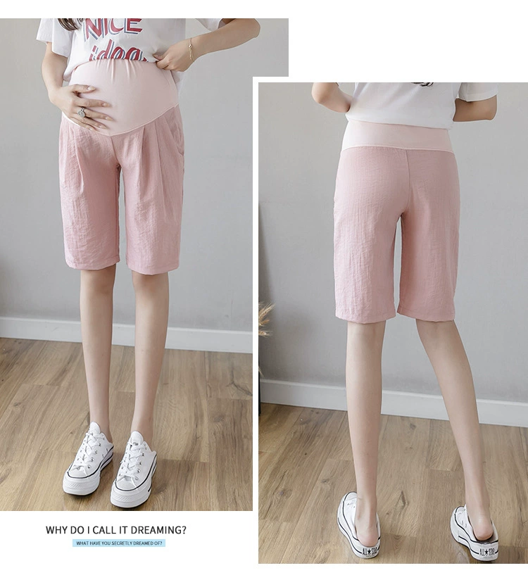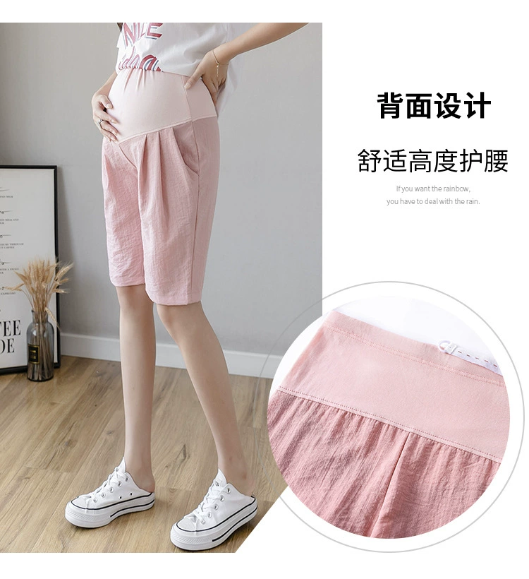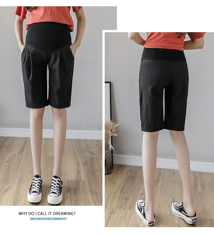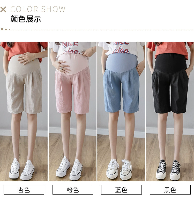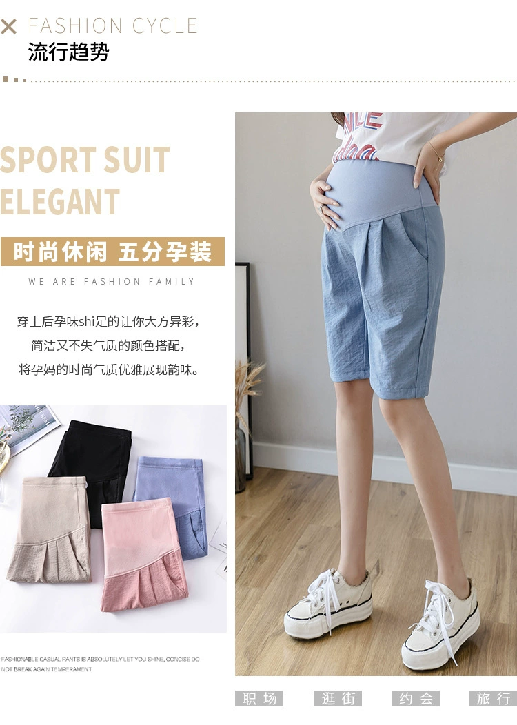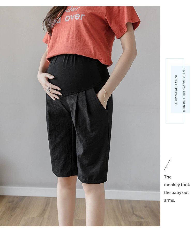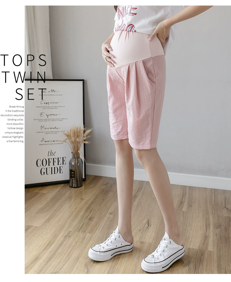 Comprar Pantalones cortos de algodón y lino para mujer embarazada, Shorts de moda de verano, ropa informal para embarazo, 1/2 de longitud