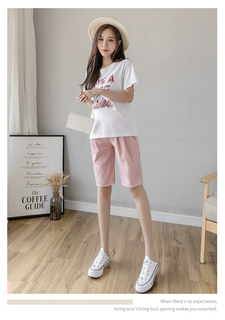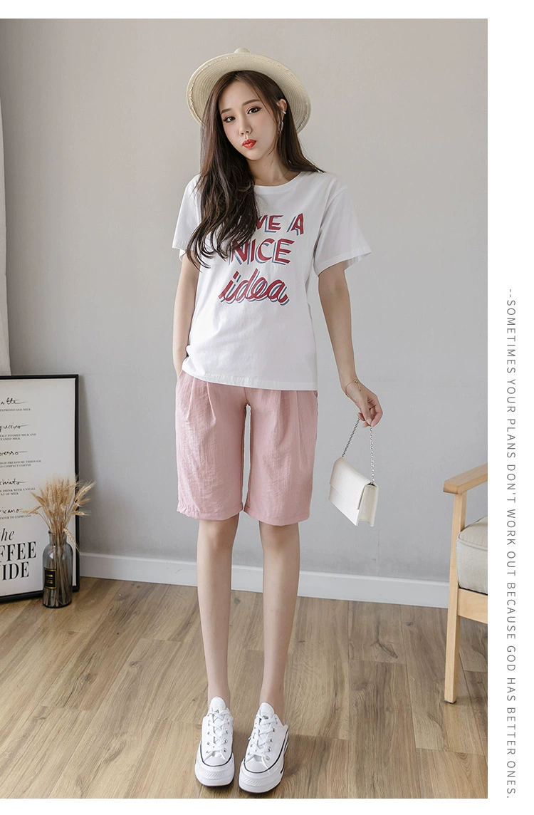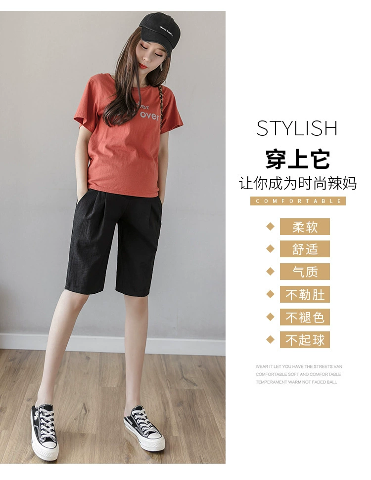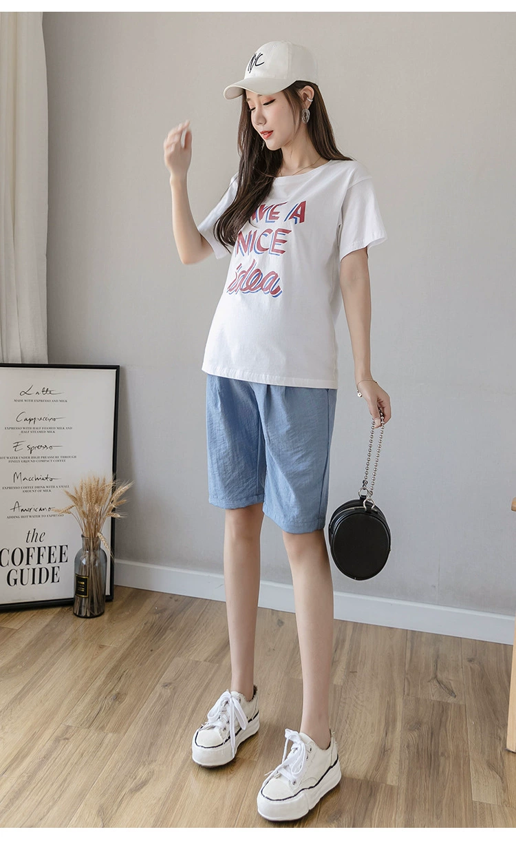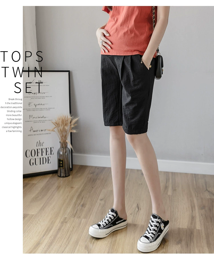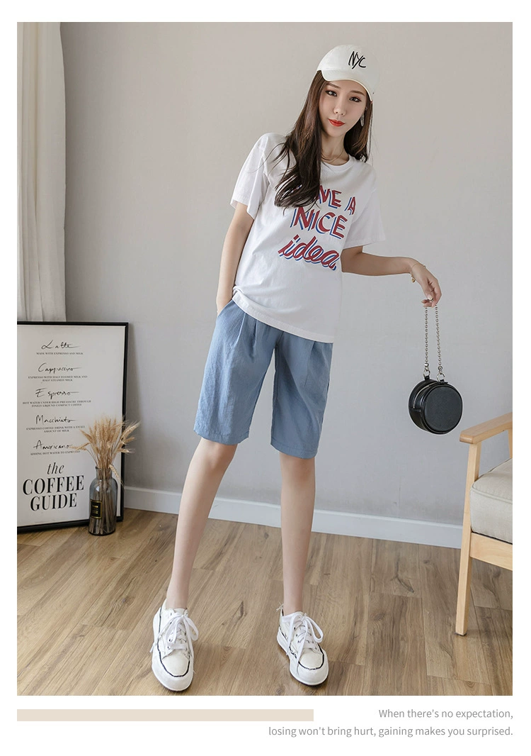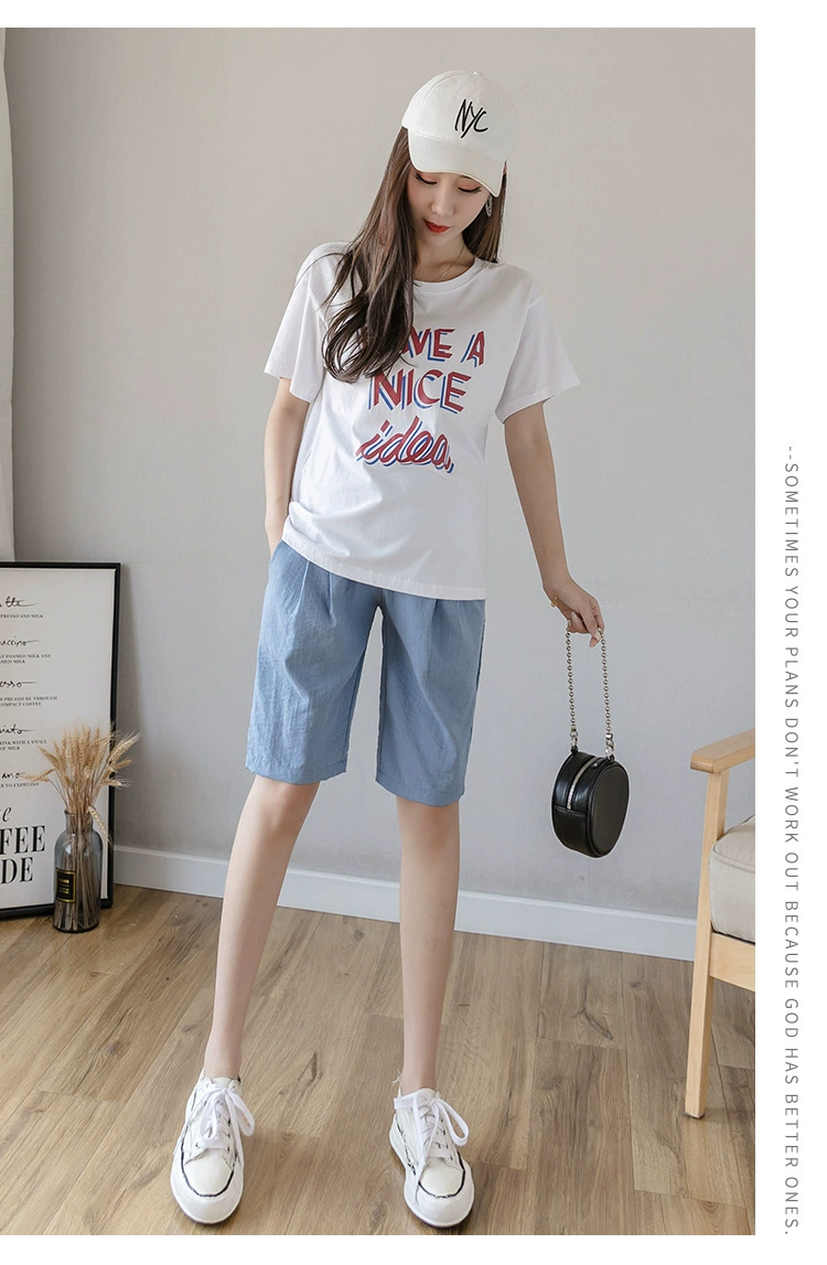 Comprar Pantalones cortos de algodón y lino para mujer embarazada, Shorts de moda de verano, ropa informal para embarazo, 1/2 de longitud
