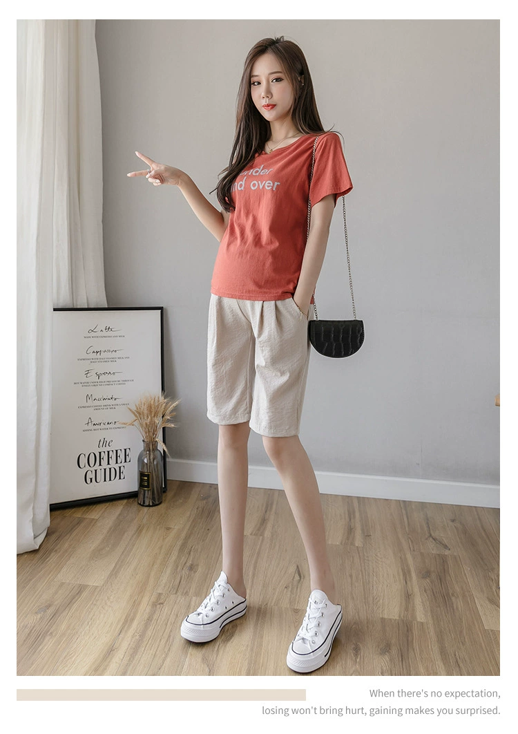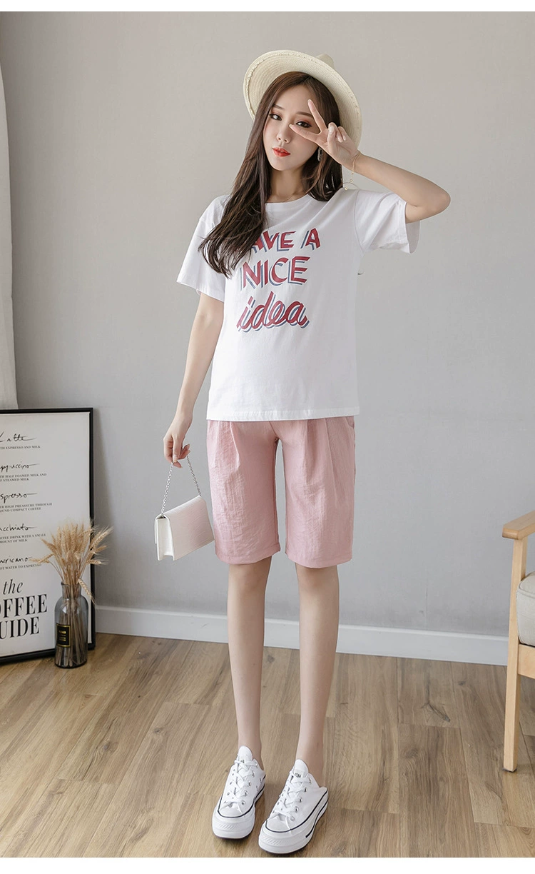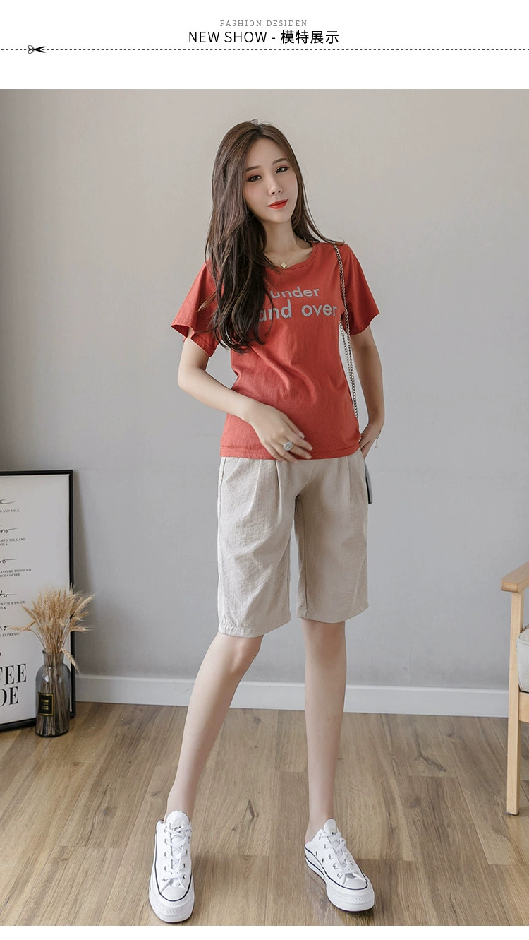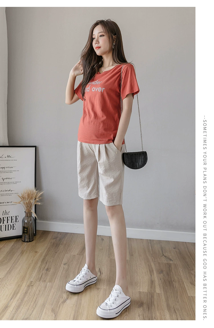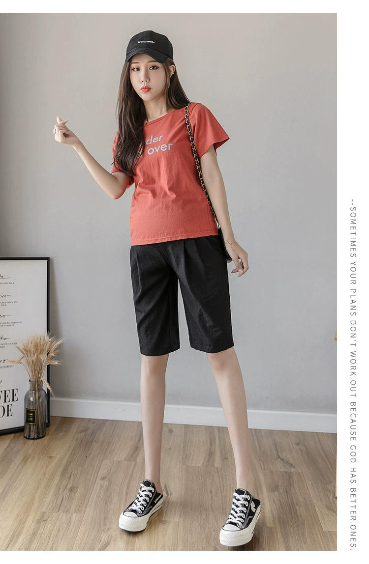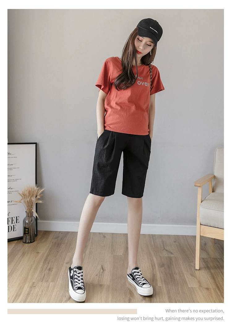 Comprar Pantalones cortos de algodón y lino para mujer embarazada, Shorts de moda de verano, ropa informal para embarazo, 1/2 de longitud