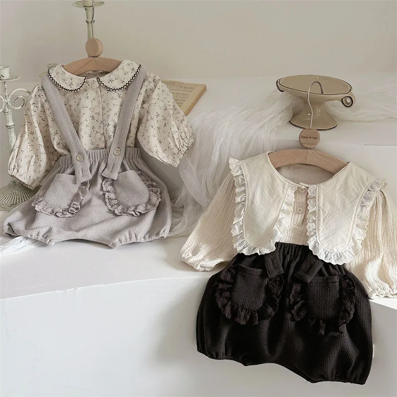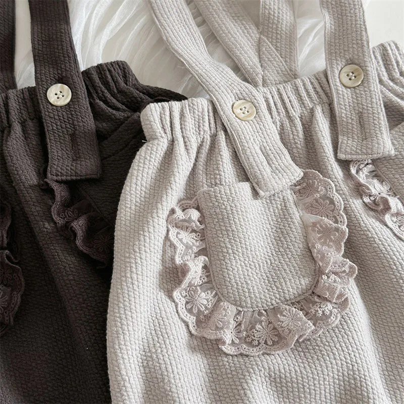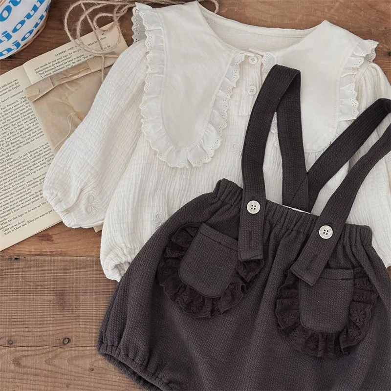 Comprar Pantalones cortos coreanos con correa de encaje para niñas pequeñas, pantalones de PP grandes simples, Color sólido, recién llegados