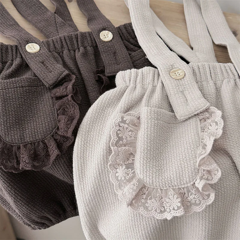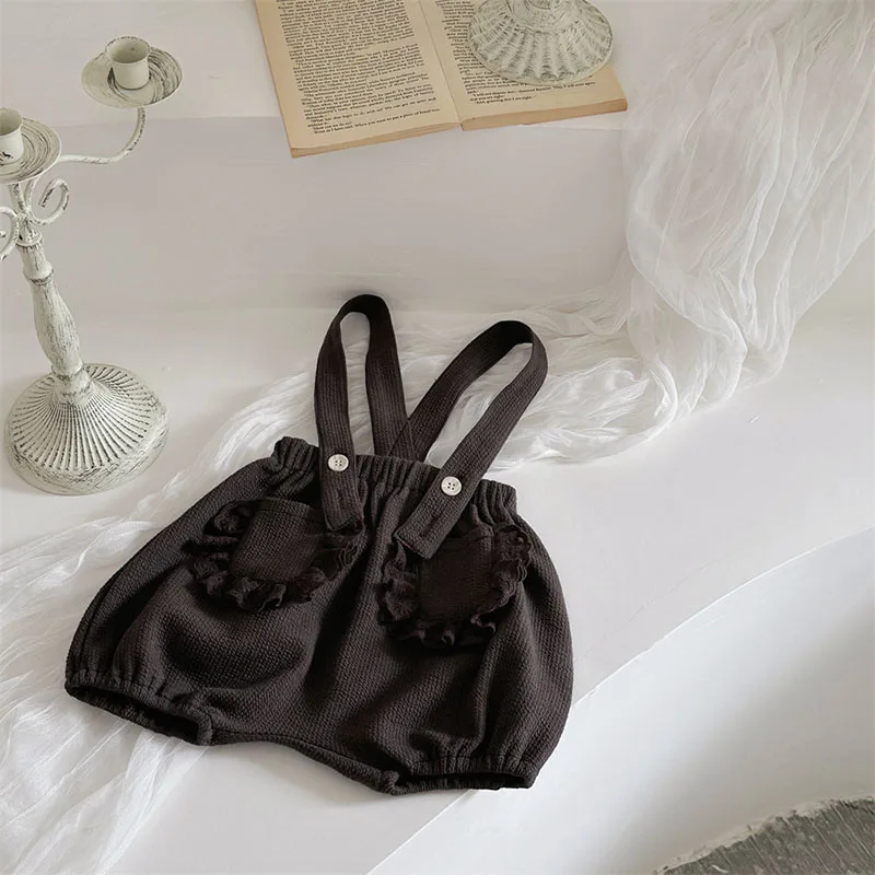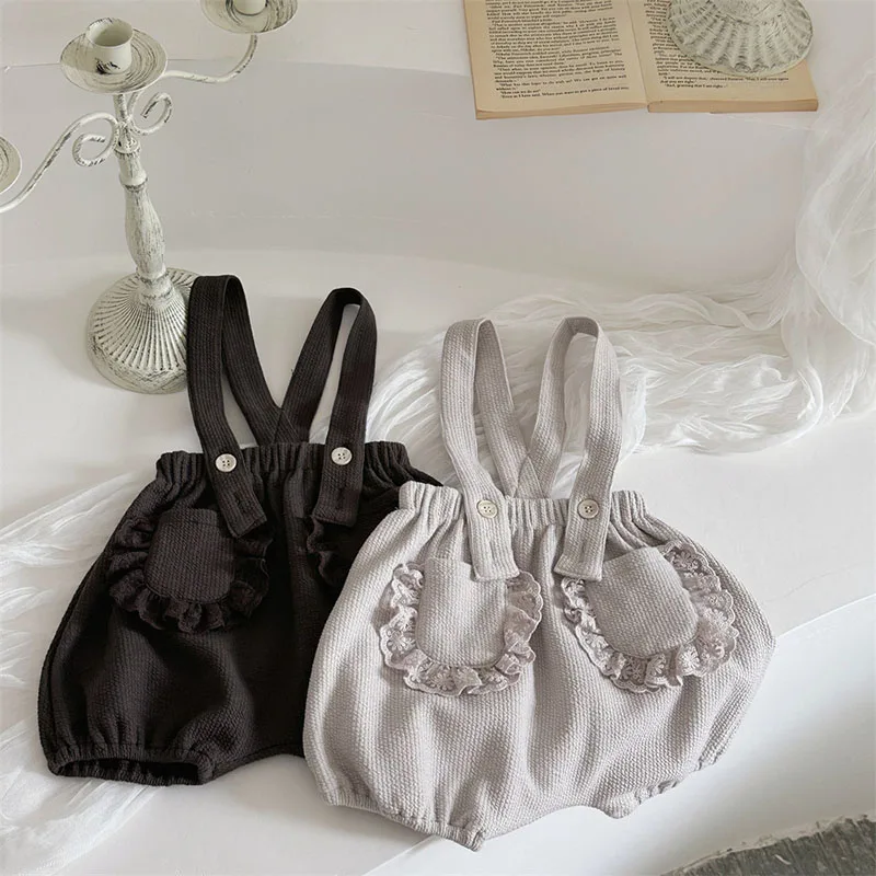 Comprar Pantalones cortos coreanos con correa de encaje para niñas pequeñas, pantalones de PP grandes simples, Color sólido, recién llegados