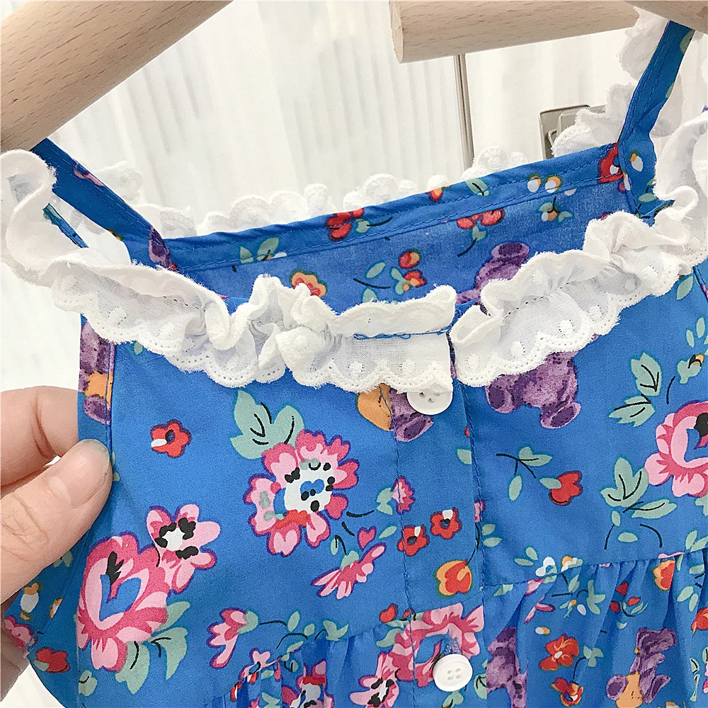 Comprar Pantalones cortos finos de verano para niña, pantalones cortos con tirantes florales para bebé, pantalones holgados, conjunto de moda extranjera