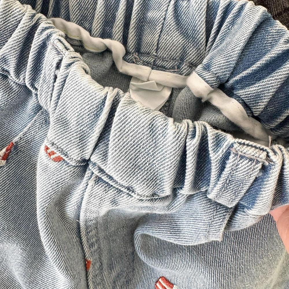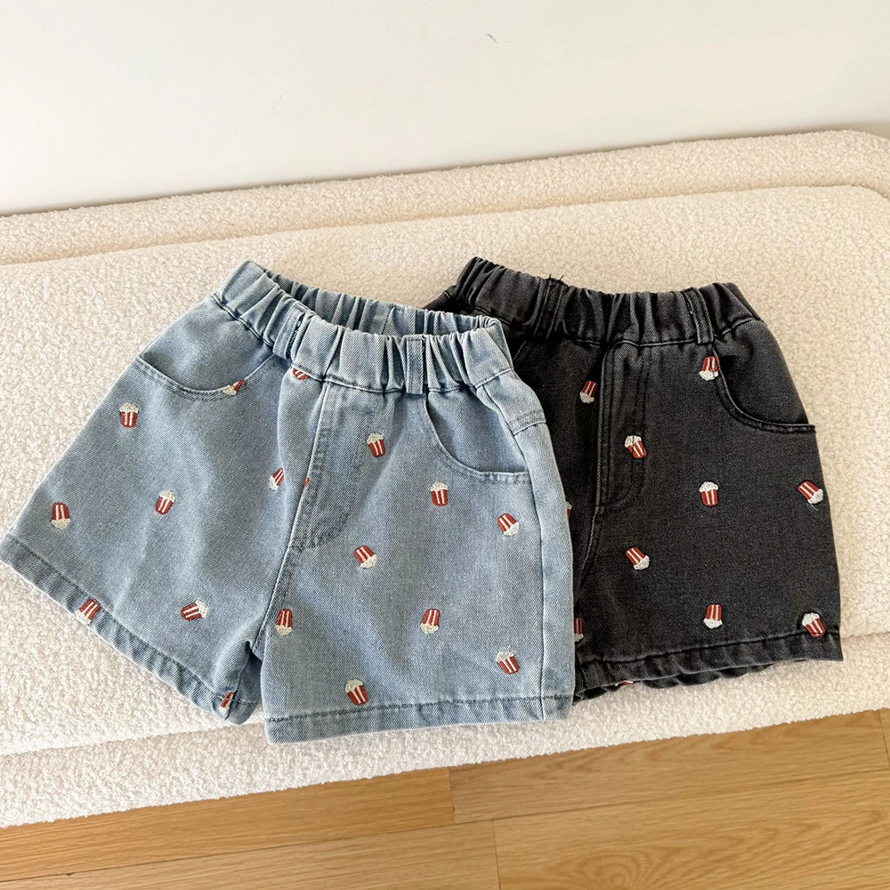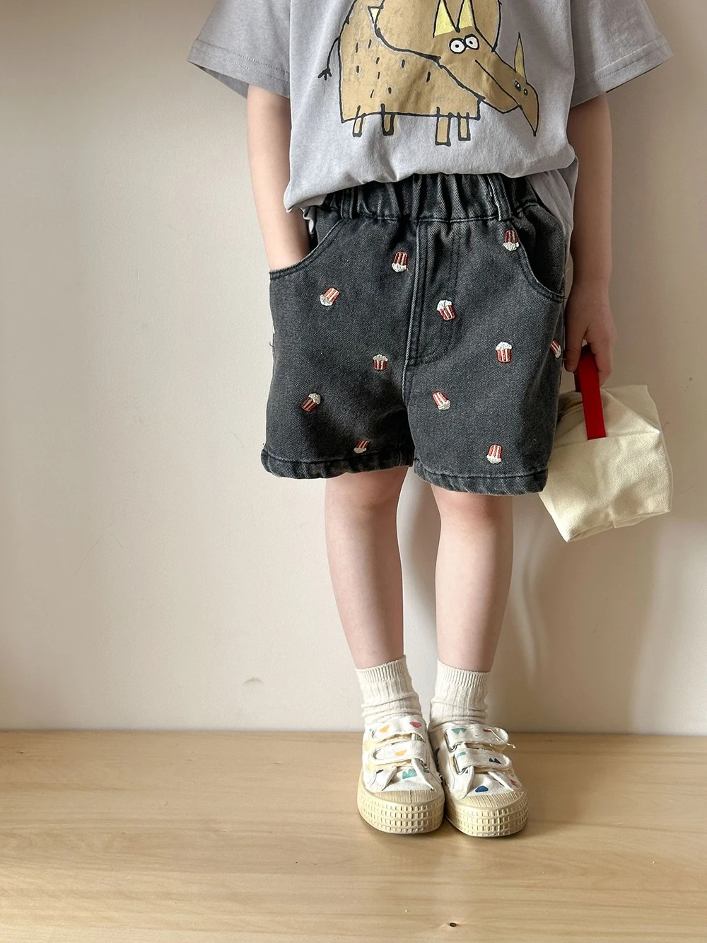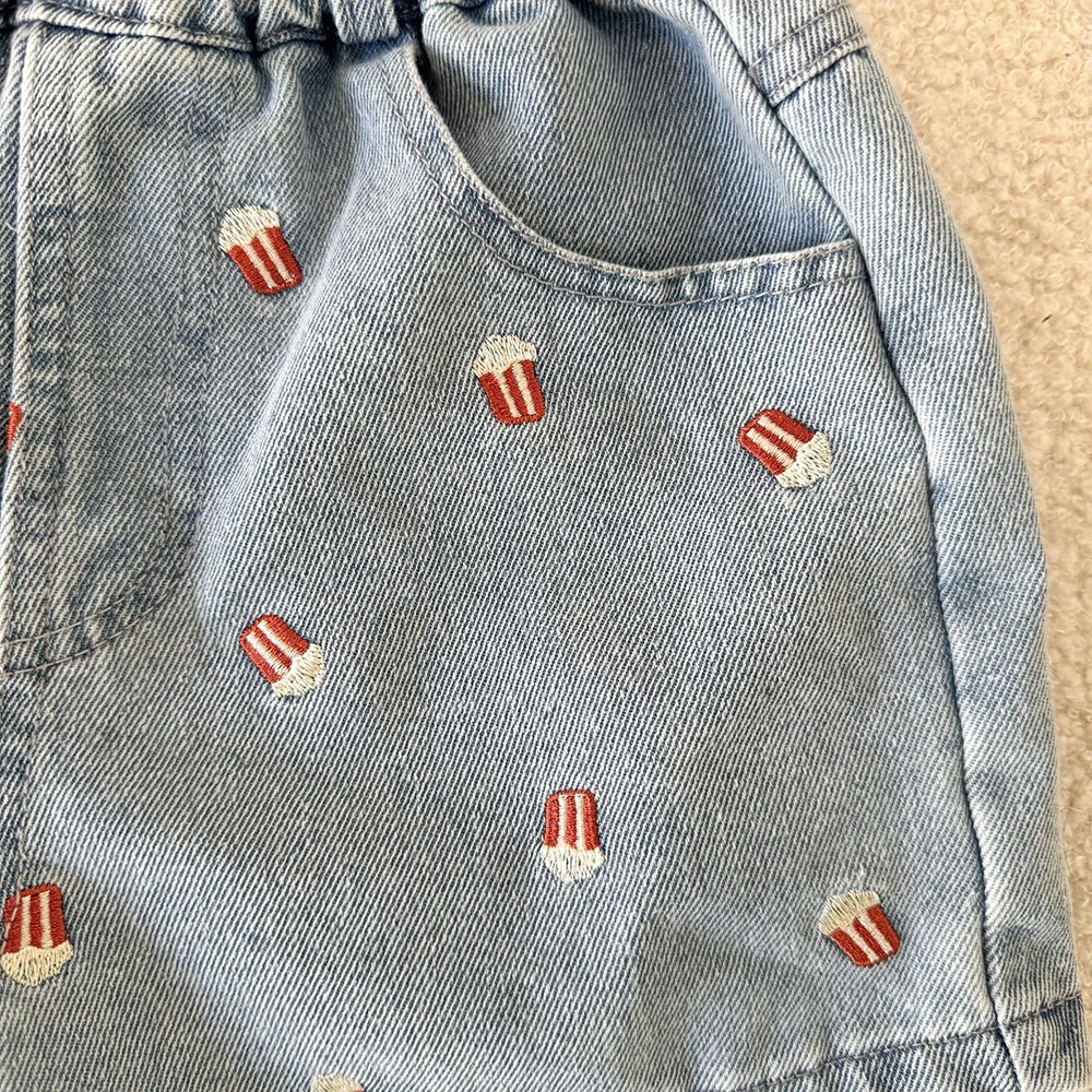 Adornado con lindos bordados de palomitas de maíz, añadiendo un toque divertido a estos pantalones casuales hasta la rodilla.