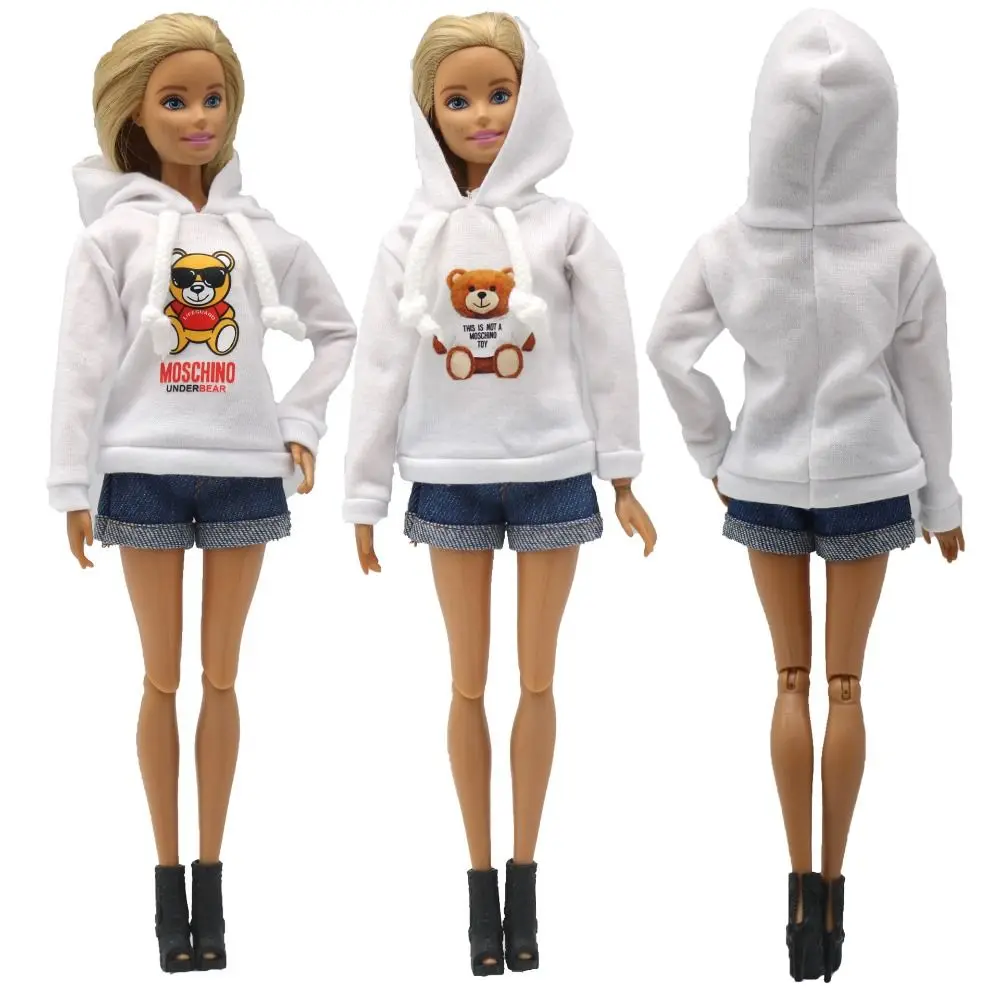 Pantalones vaqueros de muñeca a la moda de 11,5 "para muñecas de 28-30cm, ropa informal para muñecas 1/6, sudaderas con capucha sueltas con estampado de osito, accesorios para muñecas DIY