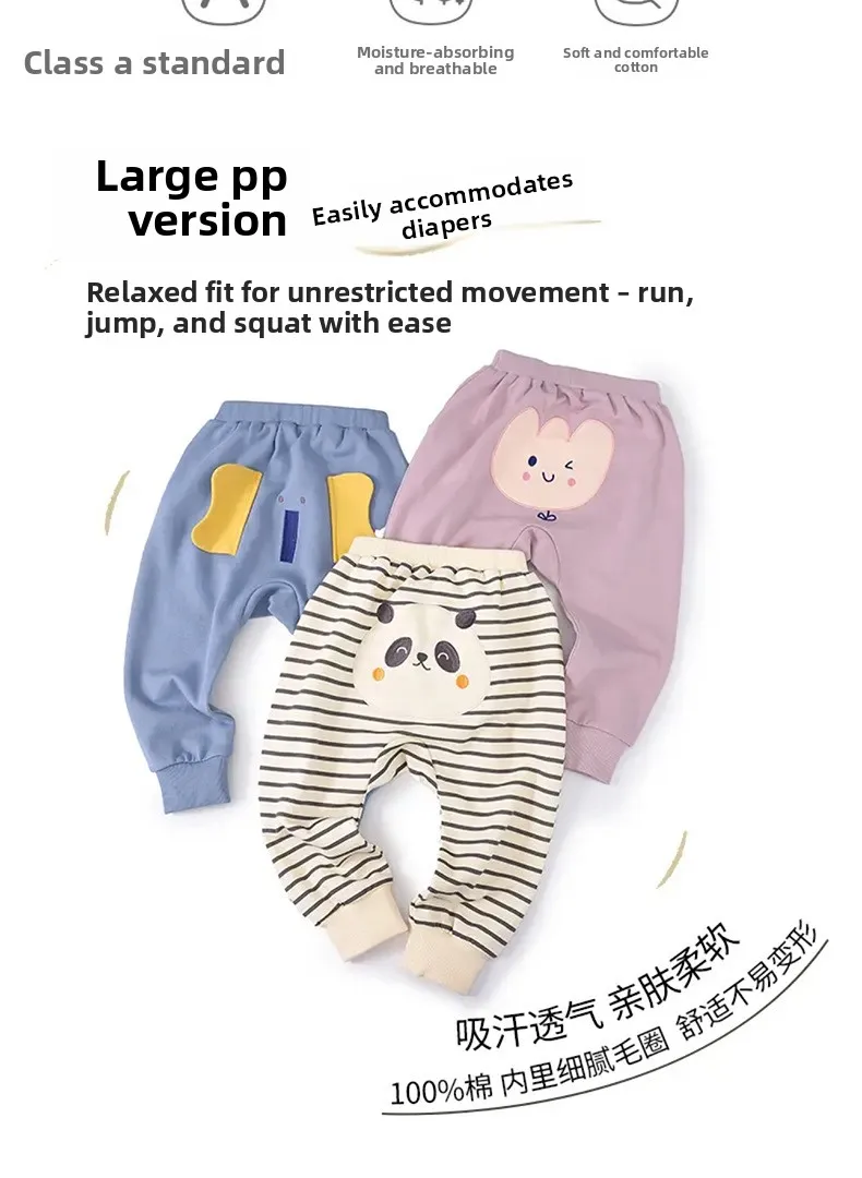 Pantalones con culo para niños, ropa de bebé Clase A, pantalones grandes de algodón puro para primavera y otoño, pantalones transpirables absorbentes de humedad