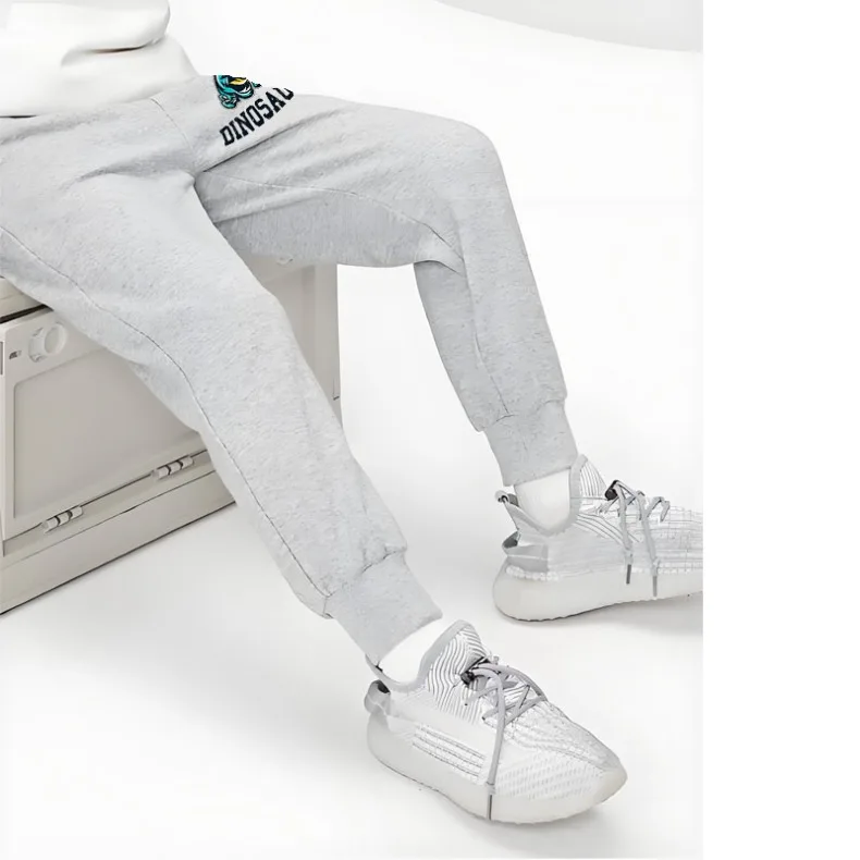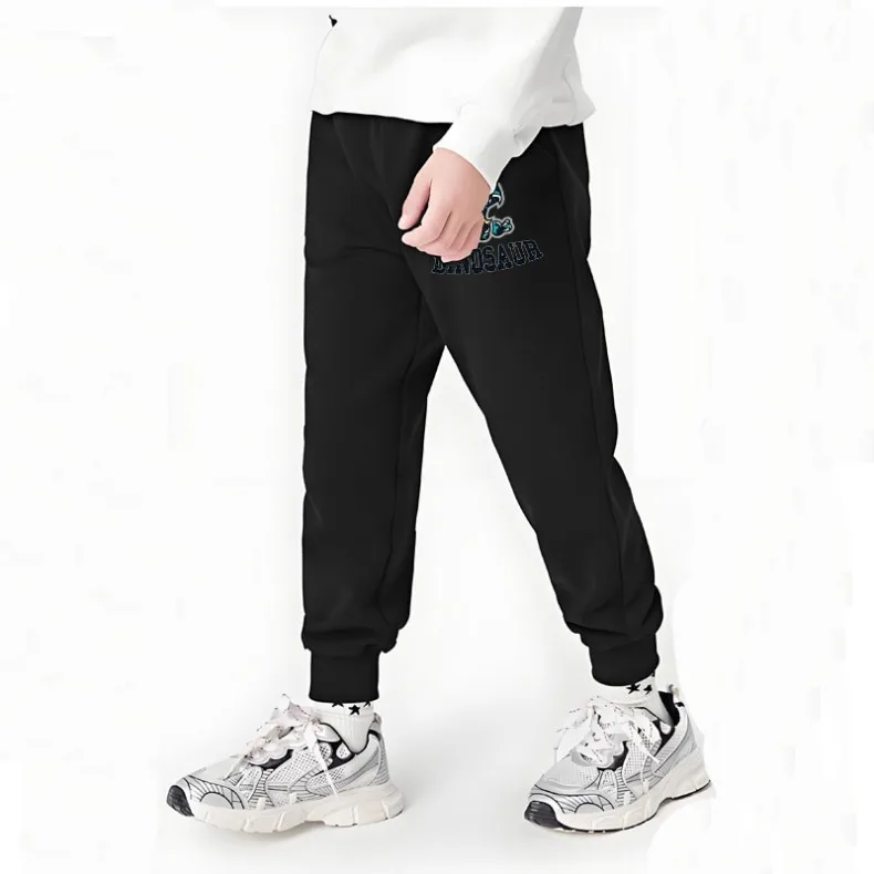Pantalones deportivos con estampado de dinosaurio para niños, cómodos pantalones holgados con cintura elástica para niños, Pantalones rectos de cintura alta para primavera y otoño