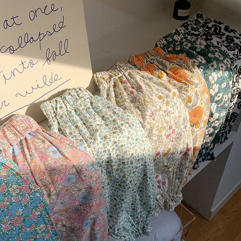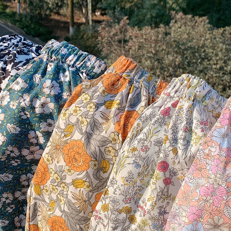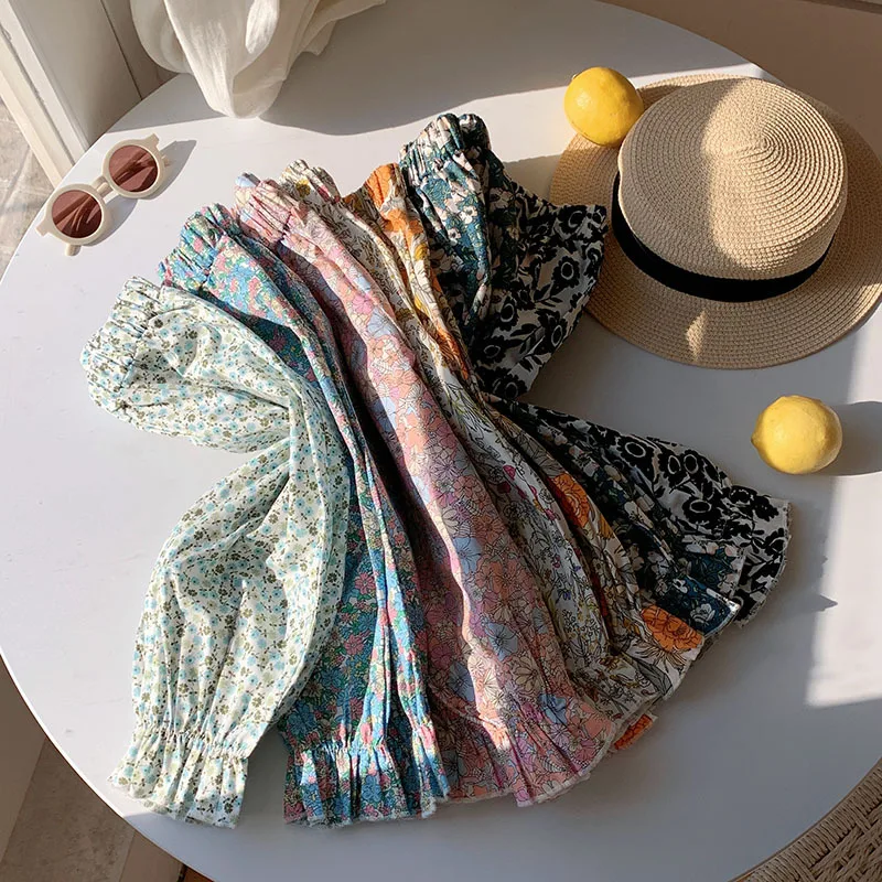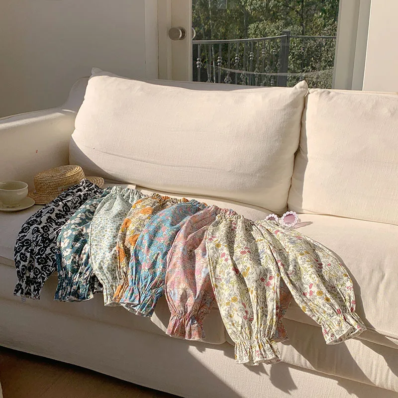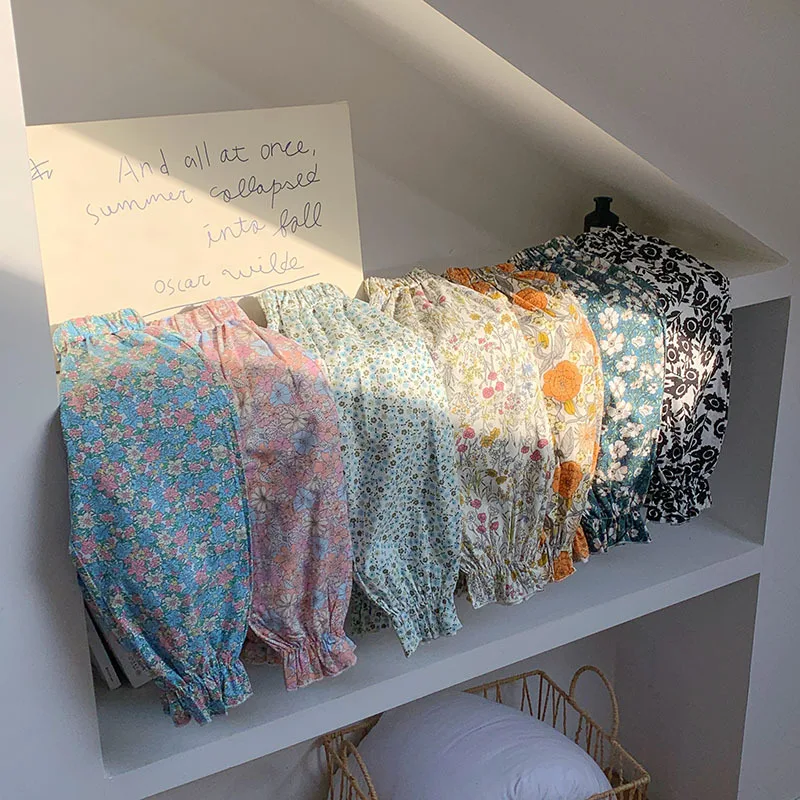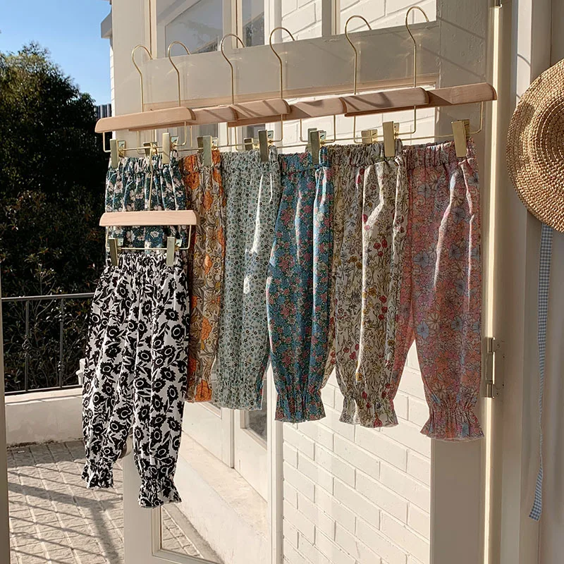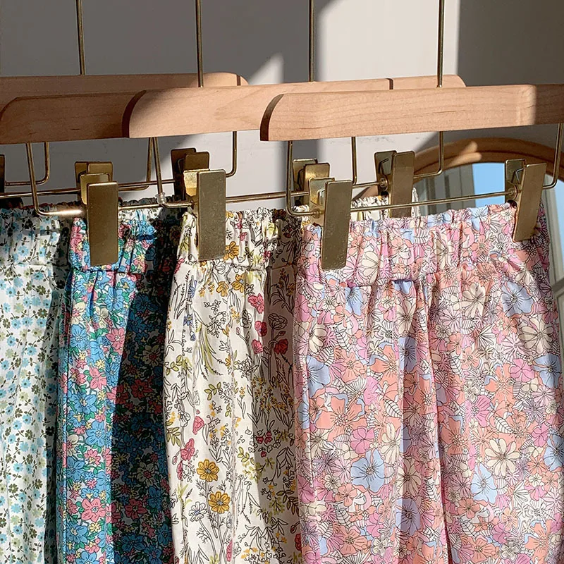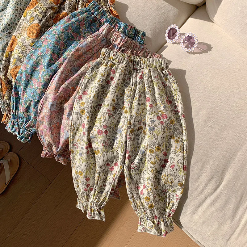 Comprar Pantalones dulces de verano con flores para niñas, pantalones con pies retráctiles con estampado informal para niños, pantalones de playa transpirables frescos para niñas