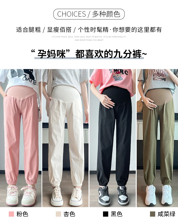 Comprar Pantalones elásticos finos de lino para mujer embarazada, ropa informal de maternidad para correr, cintura elástica, vientre, 2906 #