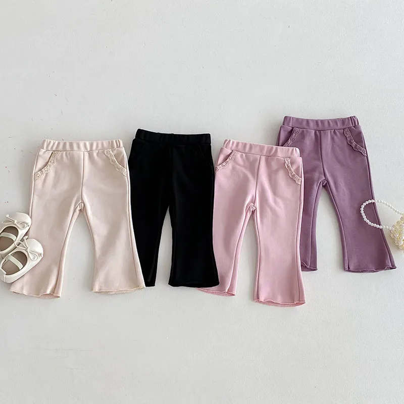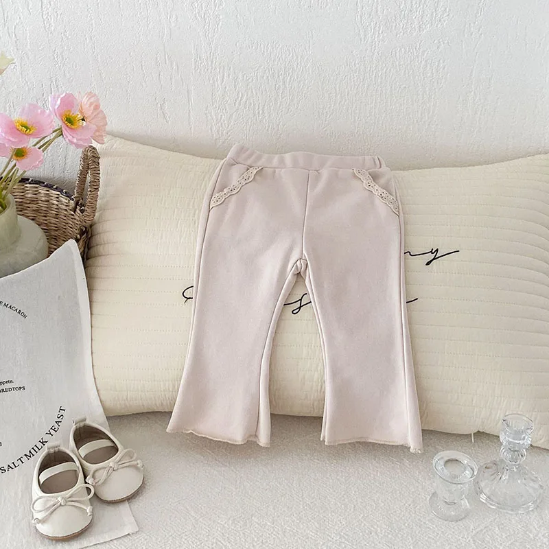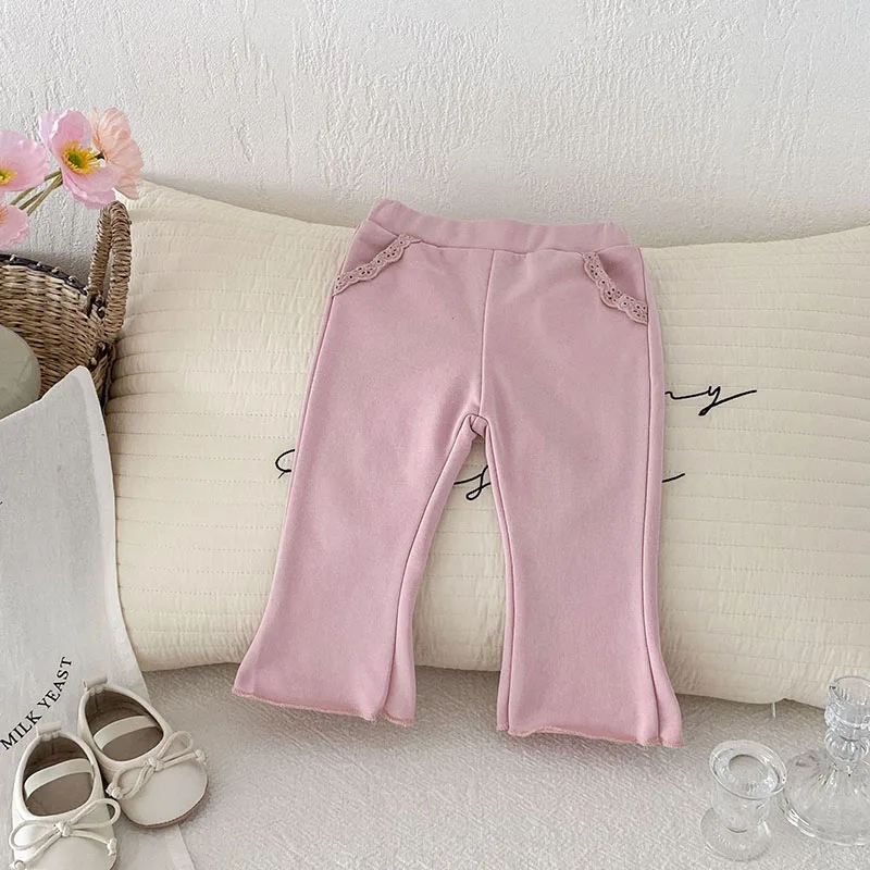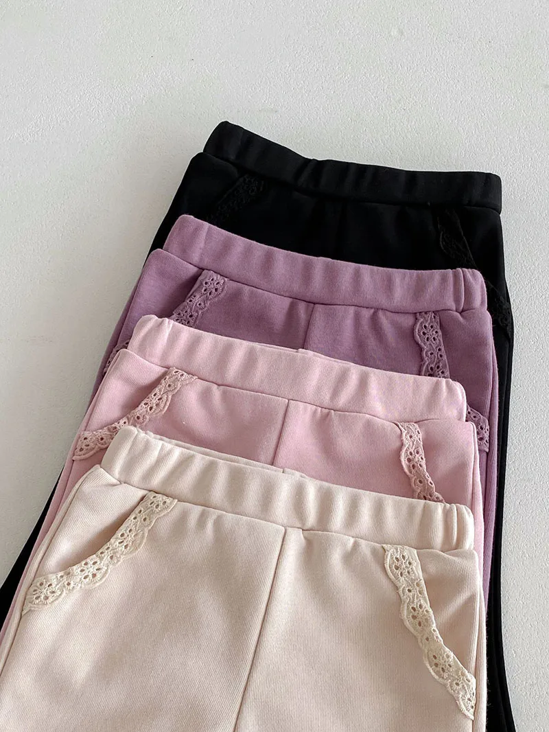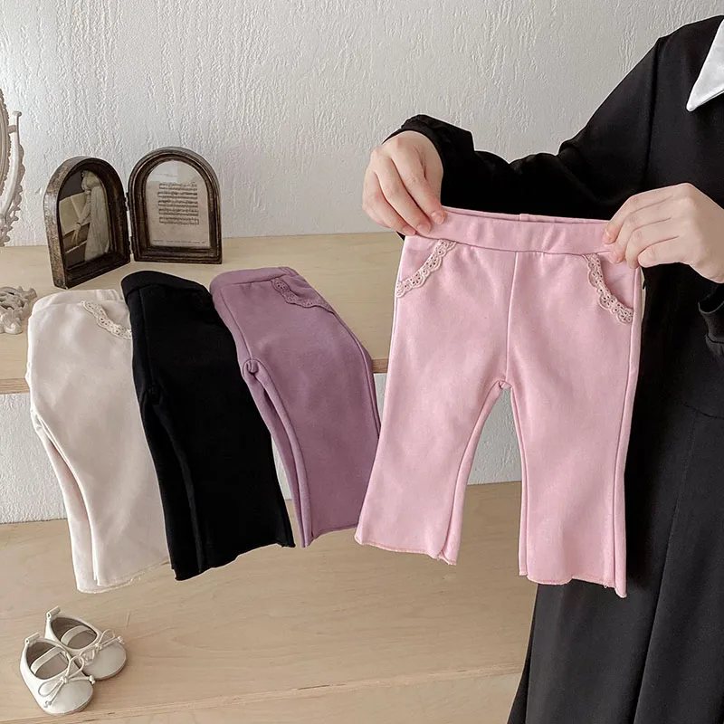 Pantalones de encaje de Color sólido para niñas pequeñas, pantalones de estilo fino para bebés