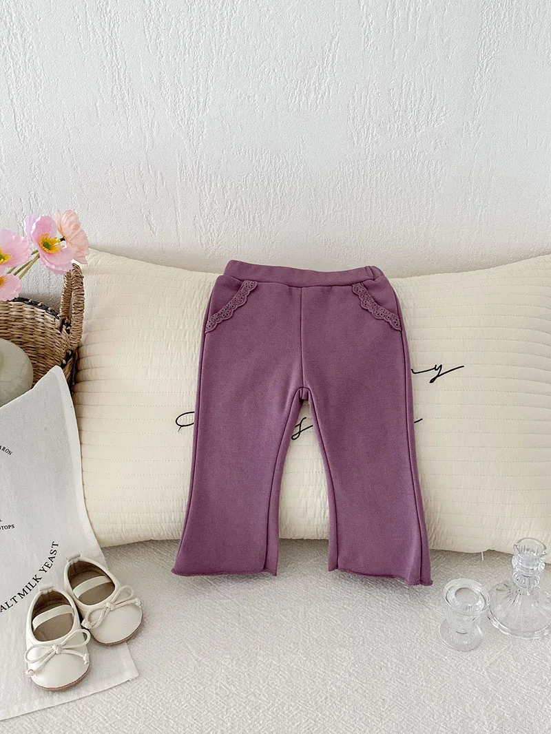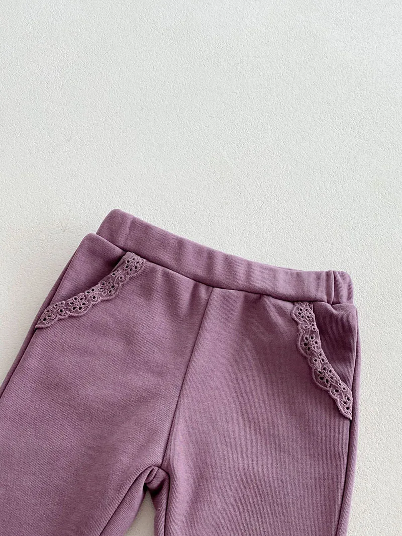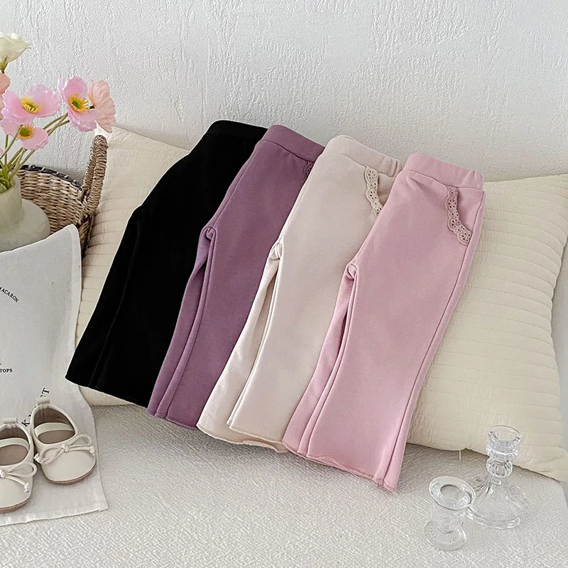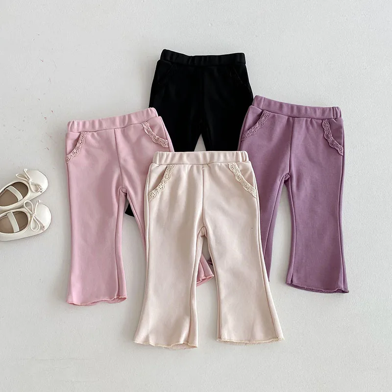 Pantalones de encaje de Color sólido para niñas pequeñas, pantalones de estilo fino para bebés