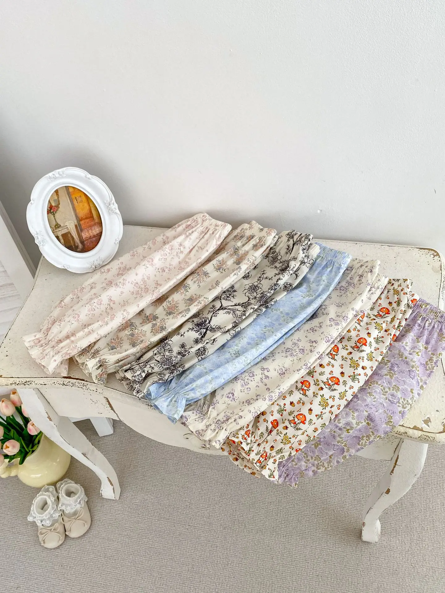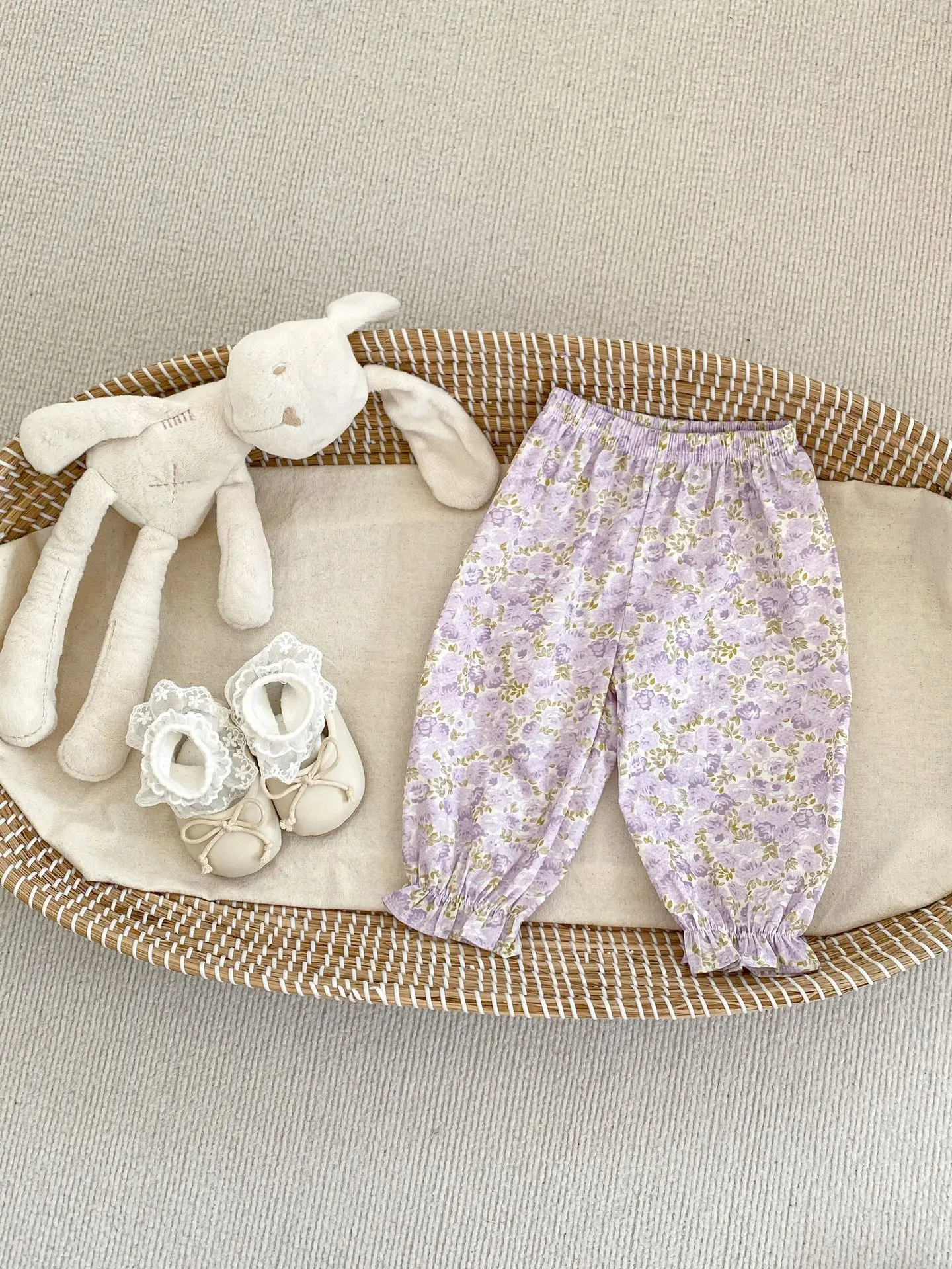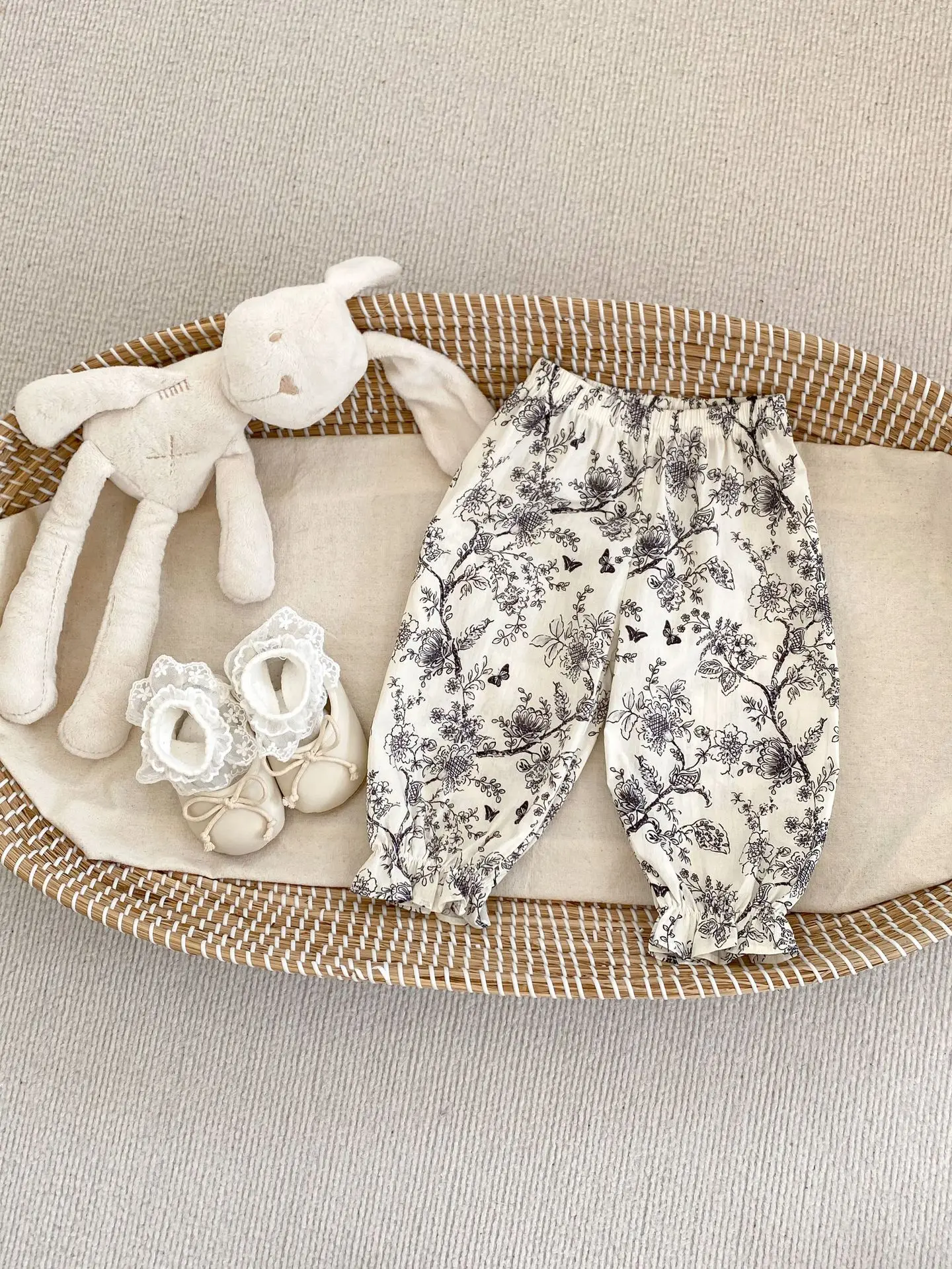 Pantalones finos de verano para bebé, pantalones antimosquitos de algodón para niñas, pantalones para niños, pantalones holgados con estampado de flores para bebé 2024