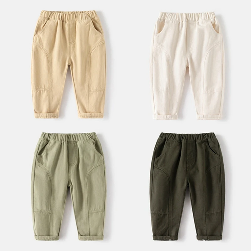 2-8 años primavera otoño niños Pantalones Bebé niño algodón lavado pantalones casuales cintura elástica recto Color sólido pantalón