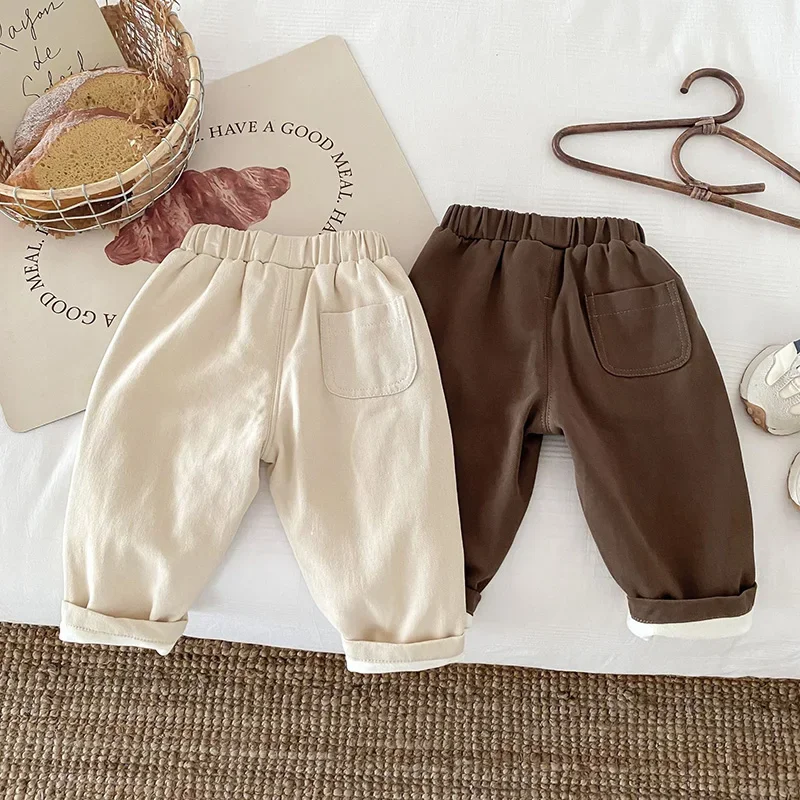 Comprar Pantalones de invierno para bebé, pantalón informal liso con forro de piel, traje de felpa cálido