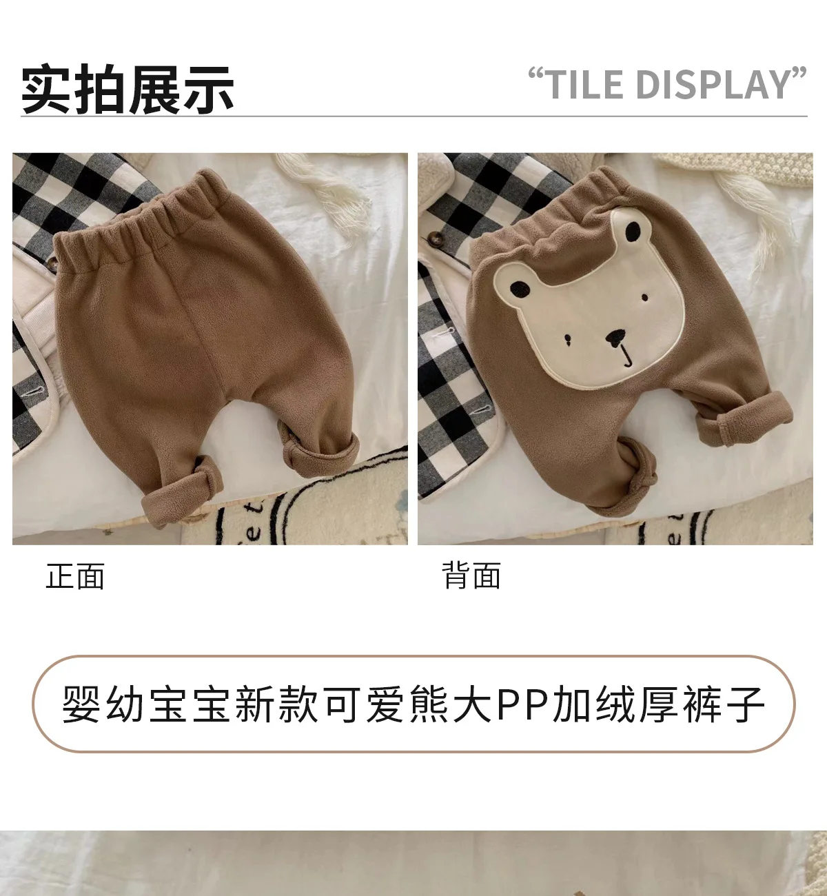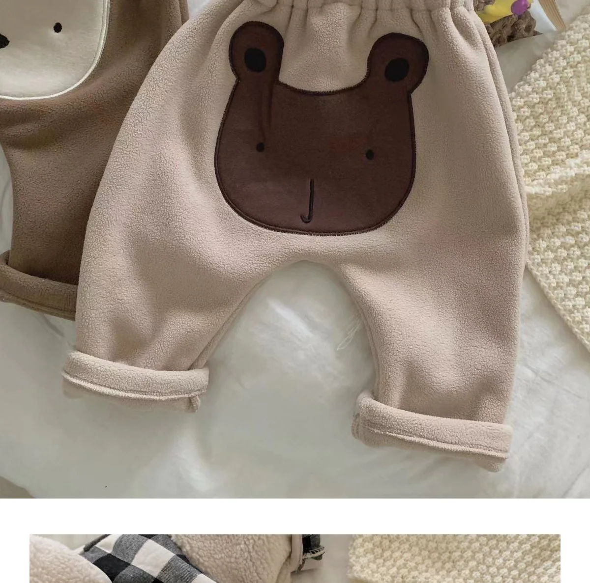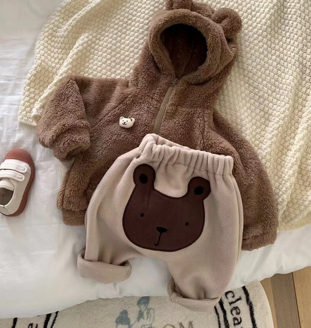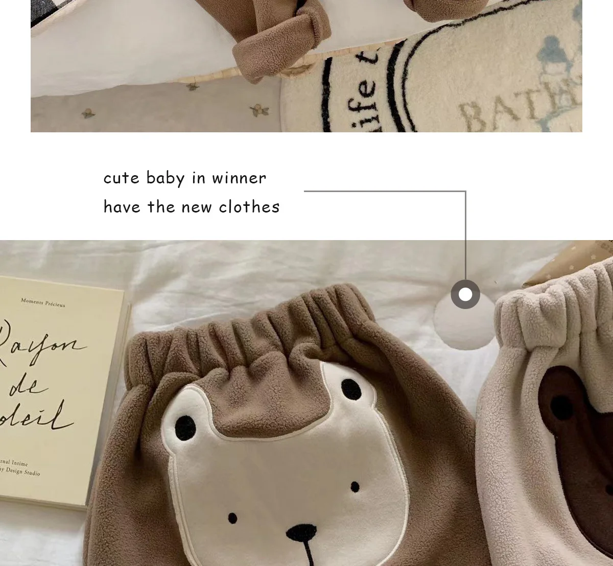 Este es un diseño muy cómodo para bebés que usan pañales. Tiene forro polar por dentro y es de tamaño generoso. Es muy cómodo de llevar al salir en el frío invierno. El oso en la parte de atrás es tan adorable.