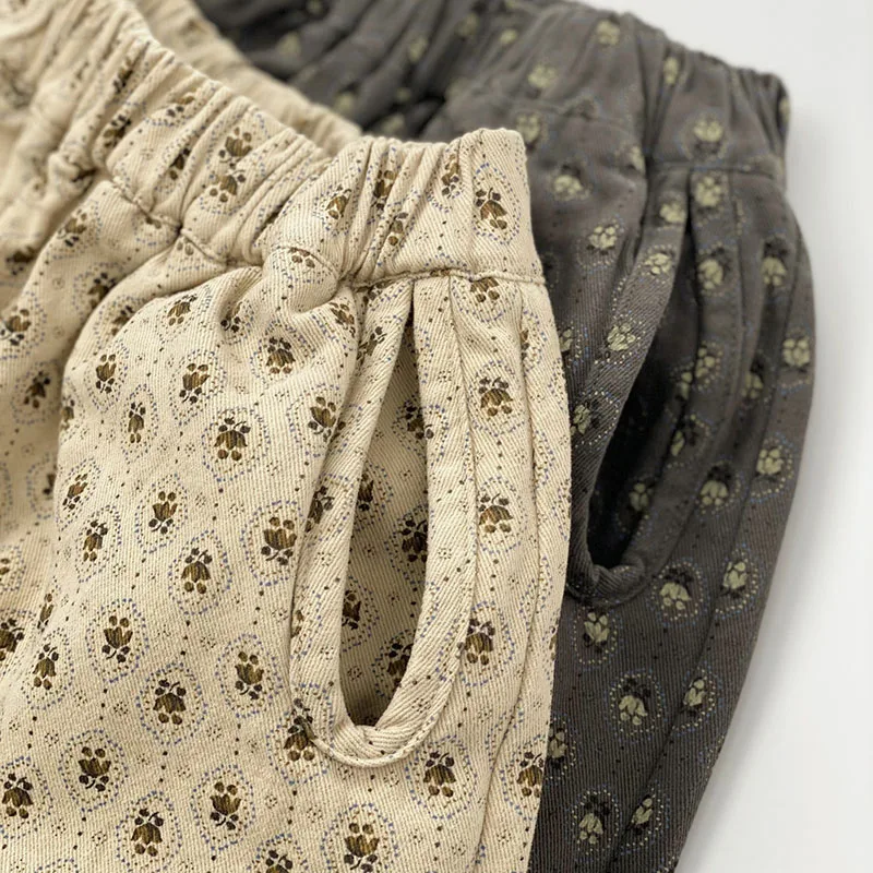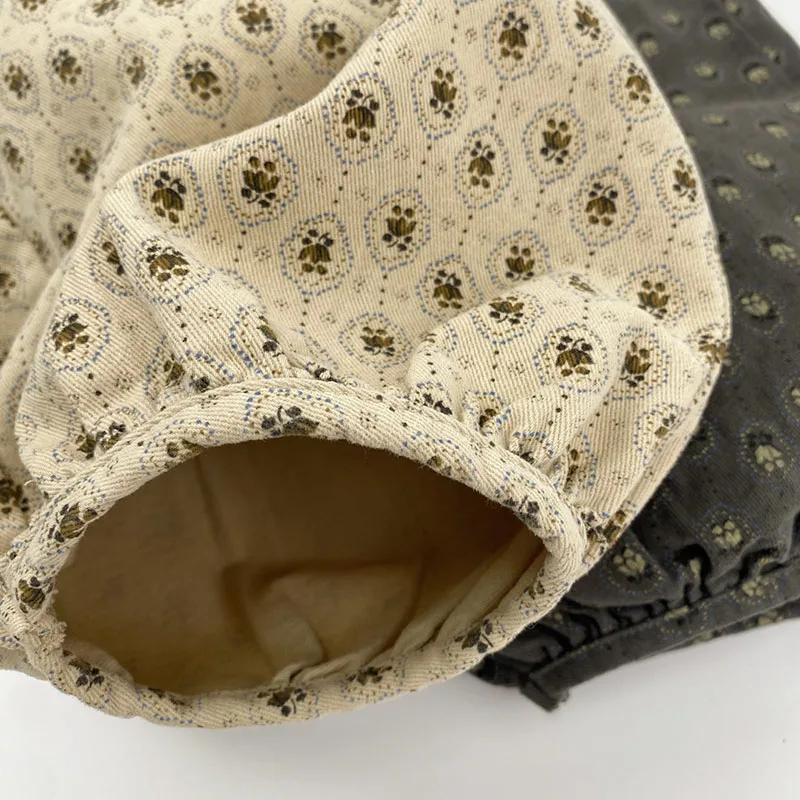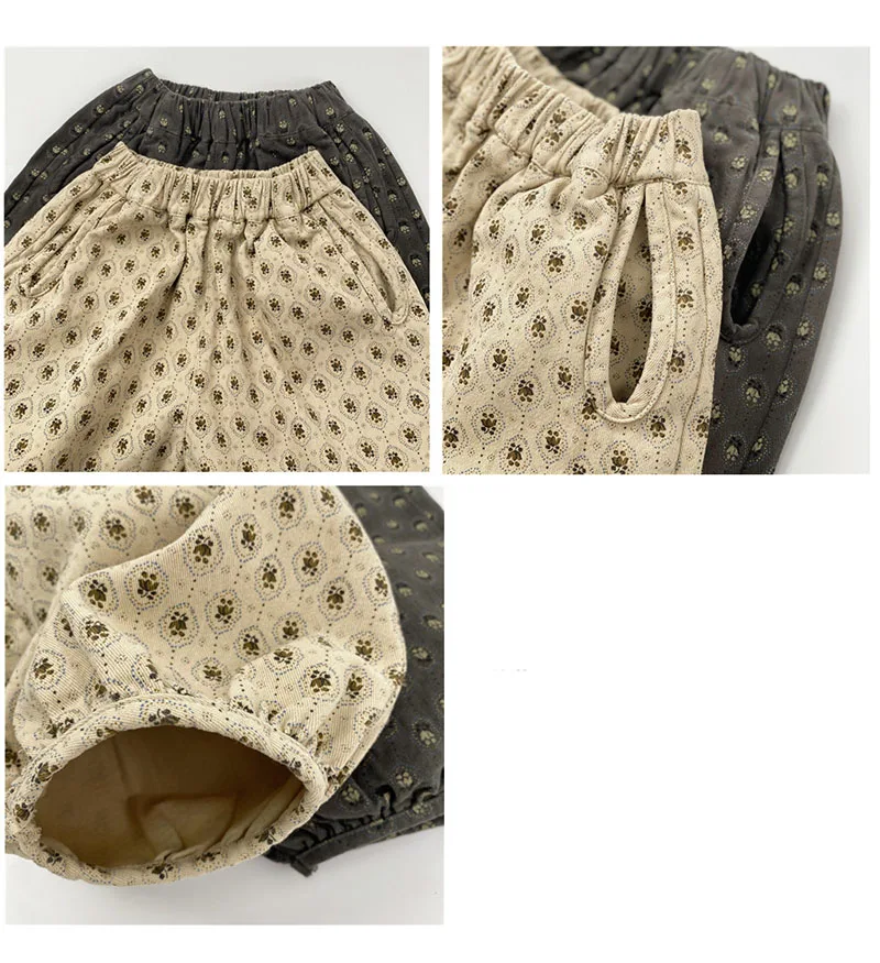 - **Estampado floral vintage y estilo pantalón farol**: Los pantalones cuentan con un estampado floral vintage combinado con un estilo de pantalón farol.El estampado floral añade un toque retro y romántico, mientras que el diseño del pantalón farol ofrece comodidad y moda, atractivo para los padres que aman la ropa vintage y elegante para niños.