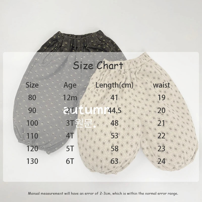 - **Fácil combinación y ajuste cómodo**: Las opciones de colores terrosos y el estilo de pantalón tipo farol hacen que sea fácil de combinar con varias blusas y prendas exteriores.El ajuste holgado garantiza una experiencia de uso cómoda para los niños, permitiendo libre movimiento.